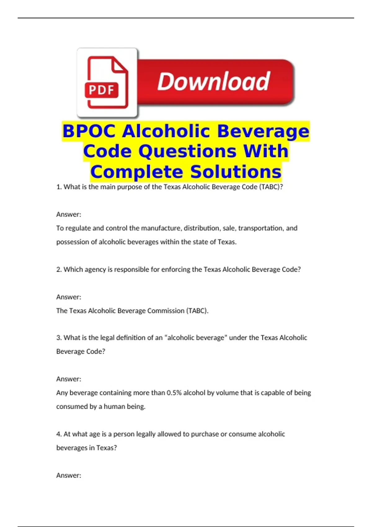 1. What is the main purpose of the Texas Alcoholic Beverage Code (TABC)?
