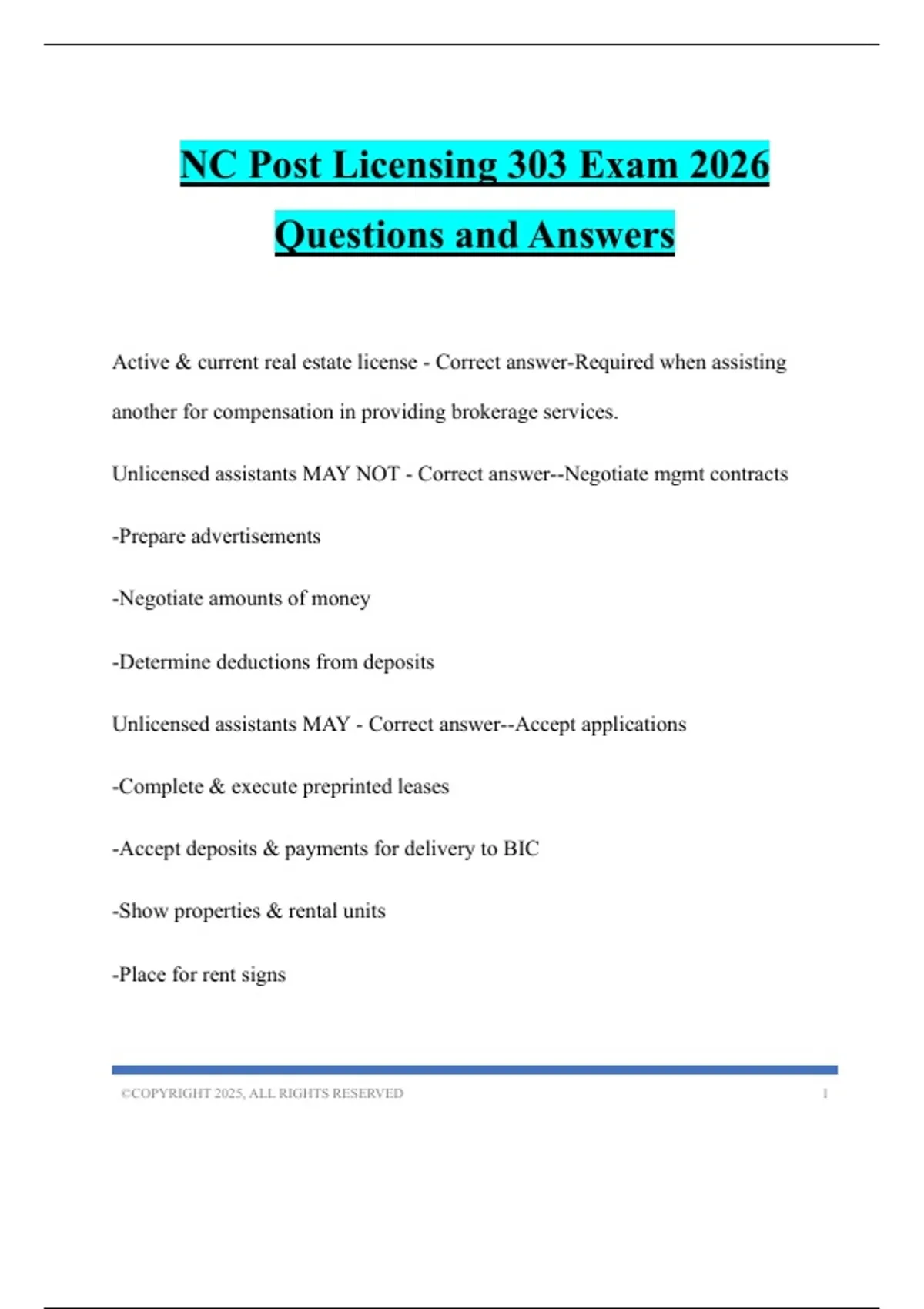 NC Post Licensing 303 Exam 2026 Questions and Answers