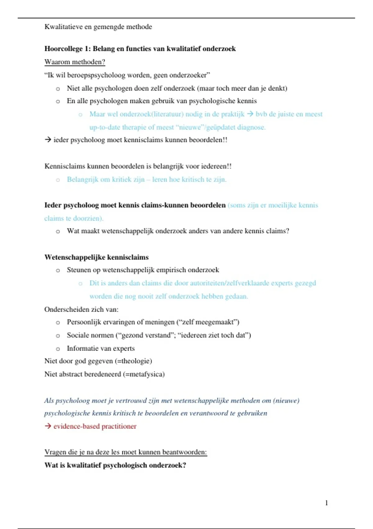 Hoorcollege 1: Belang en functies van kwalitatief onderzoek