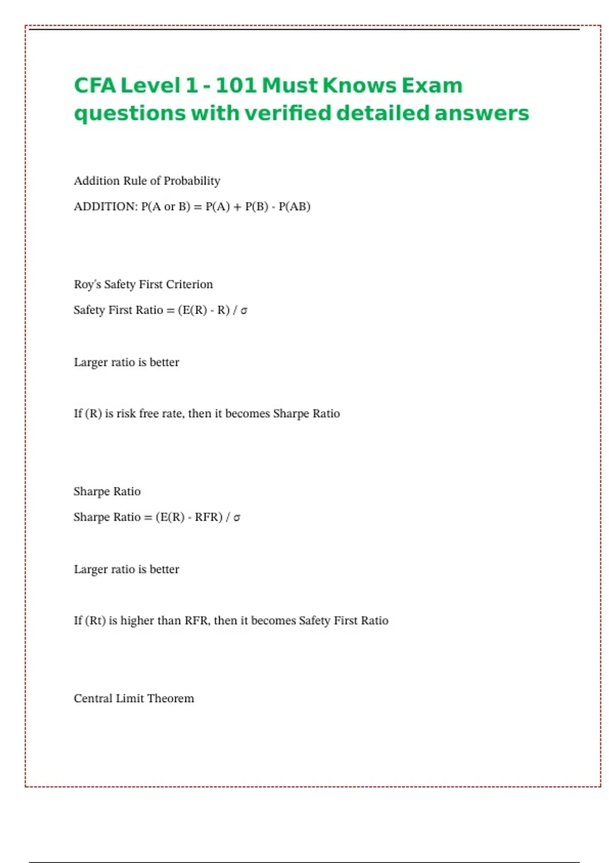 CFA Level 1 - 101 Must Knows Exam questions with verified detailed answers