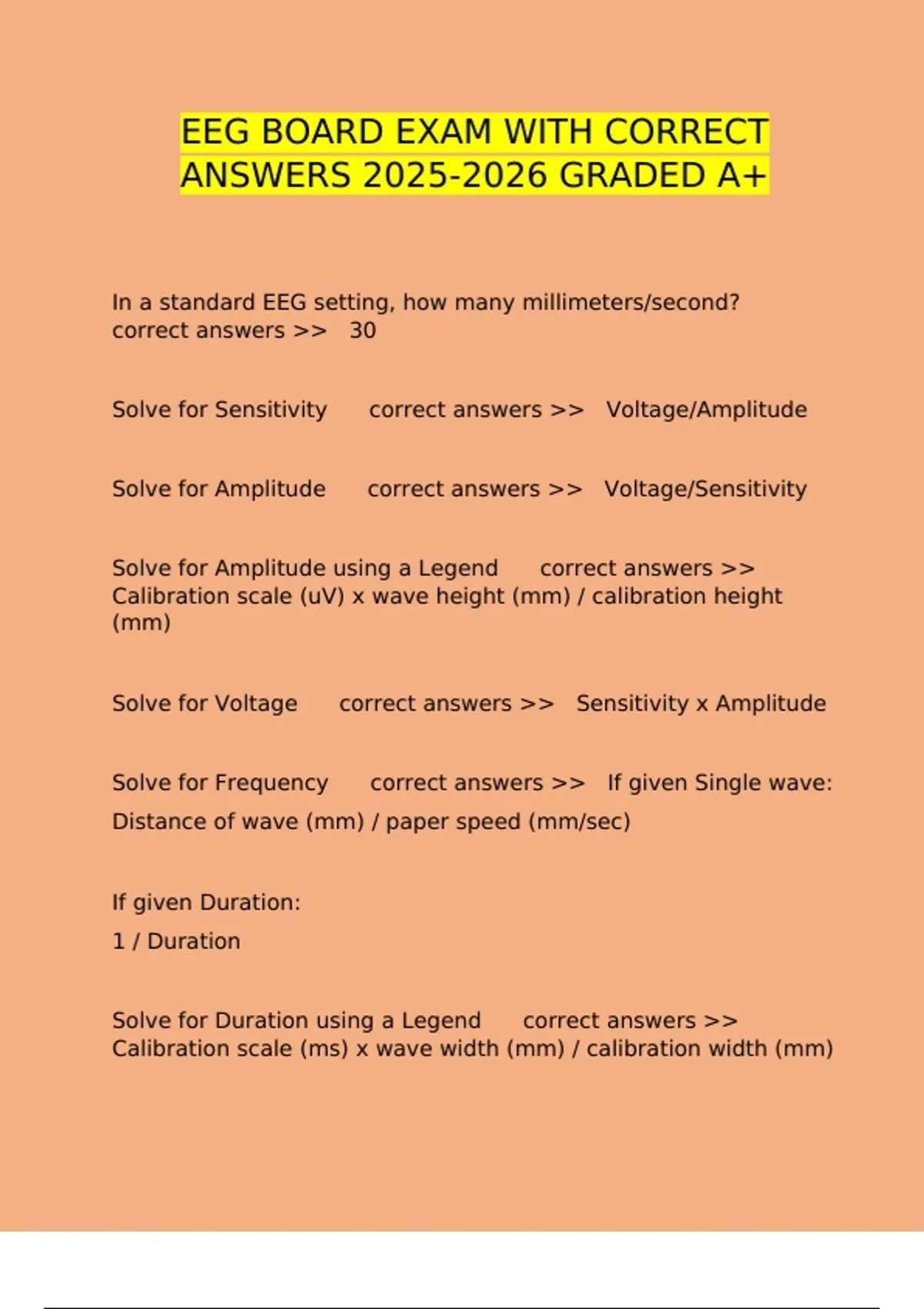EEG BOARD EXAM WITH CORRECT