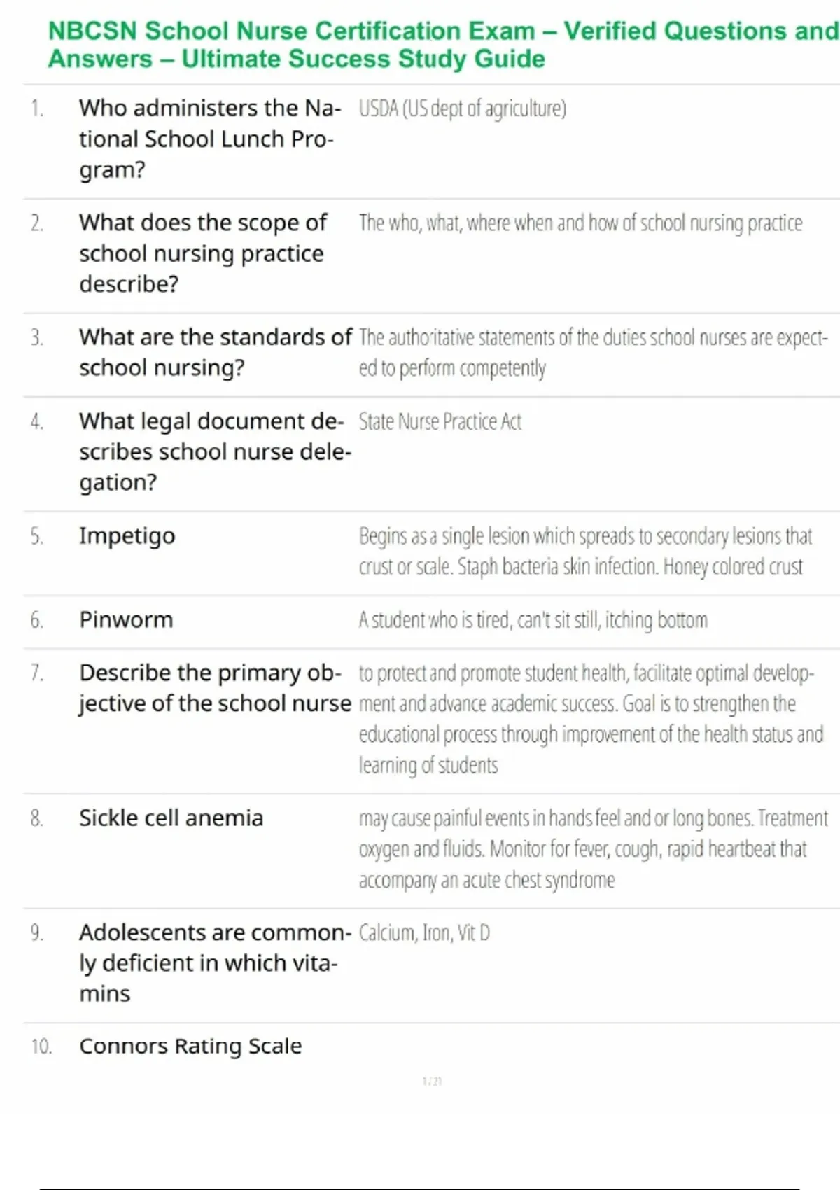 NBCSN School Nurse Certification Exam – Verified Questions and Answers – Ultimate Success Study Guide