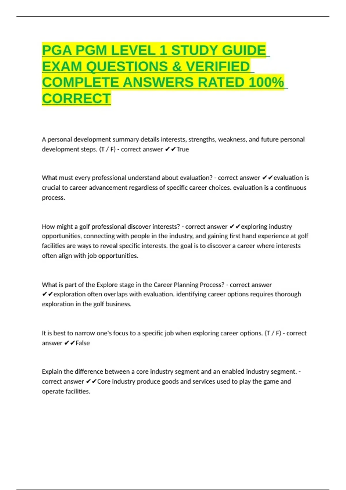 PGA PGM LEVEL 1 STUDY GUIDE EXAM QUESTIONS & VERIFIED COMPLETE ANSWERS RATED 100% CORRECT designed to help students and apprentices in the PGA PGM Program prepare for their various knowledge and skills assessments. These exams are required steps toward becoming a PGA Class A professional.