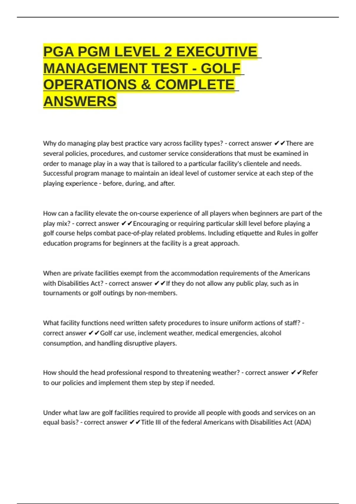 MANAGEMENT TEST - GOLF