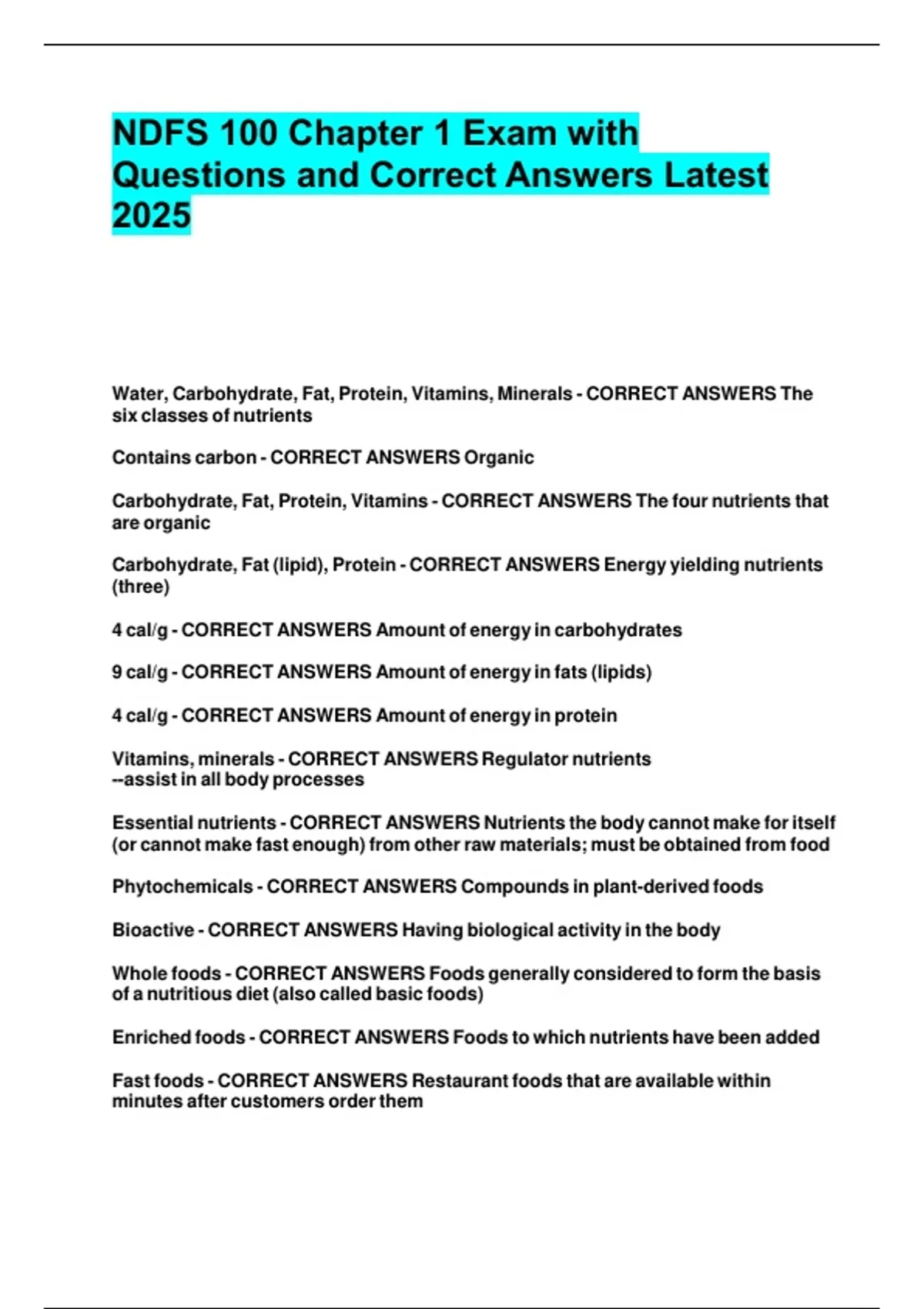 NDFS 100 Chapter 1 Exam with Questions and Correct Answers Latest 2025.
