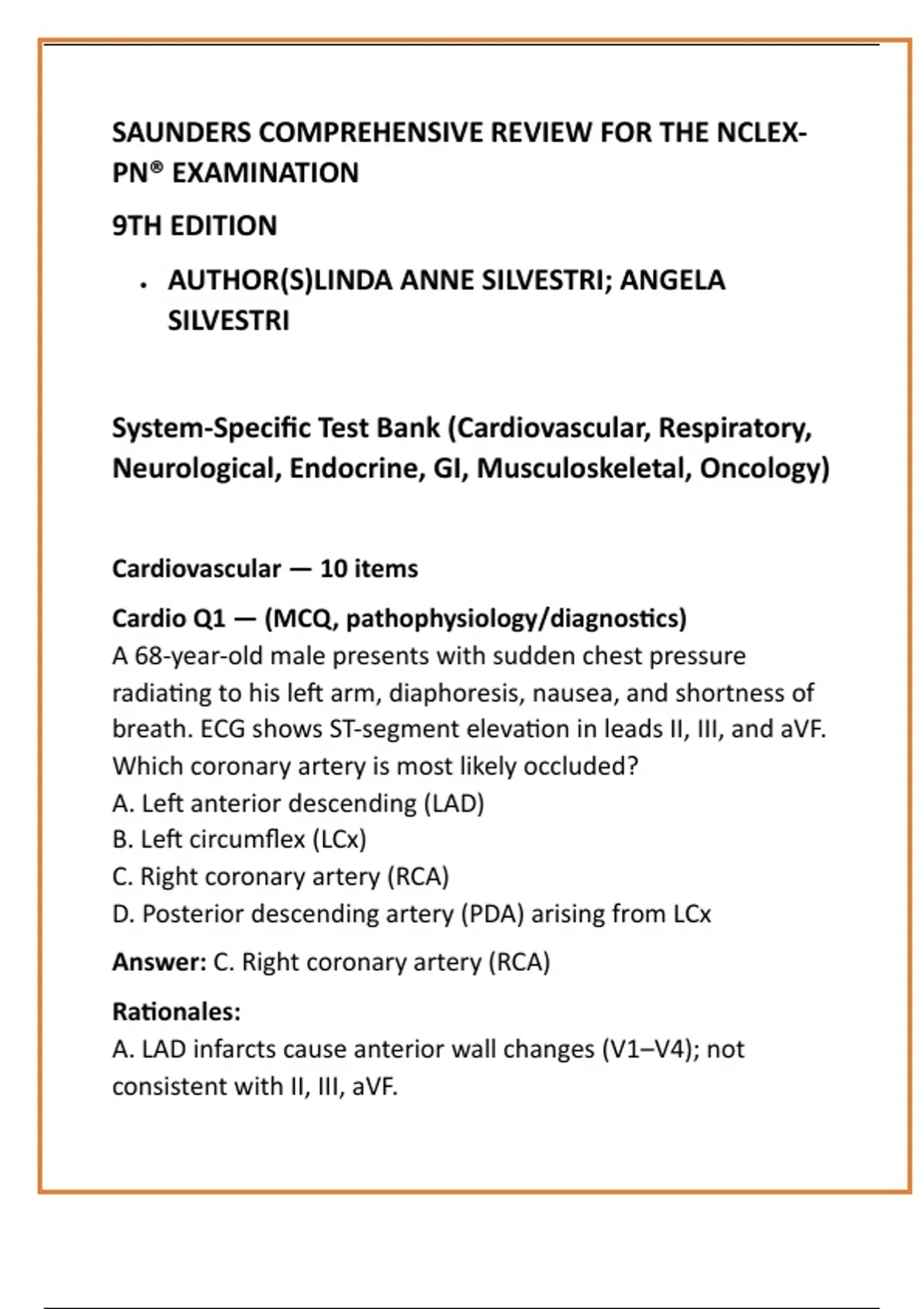 System-Specific Test Bank (Cardiovascular, Respiratory,