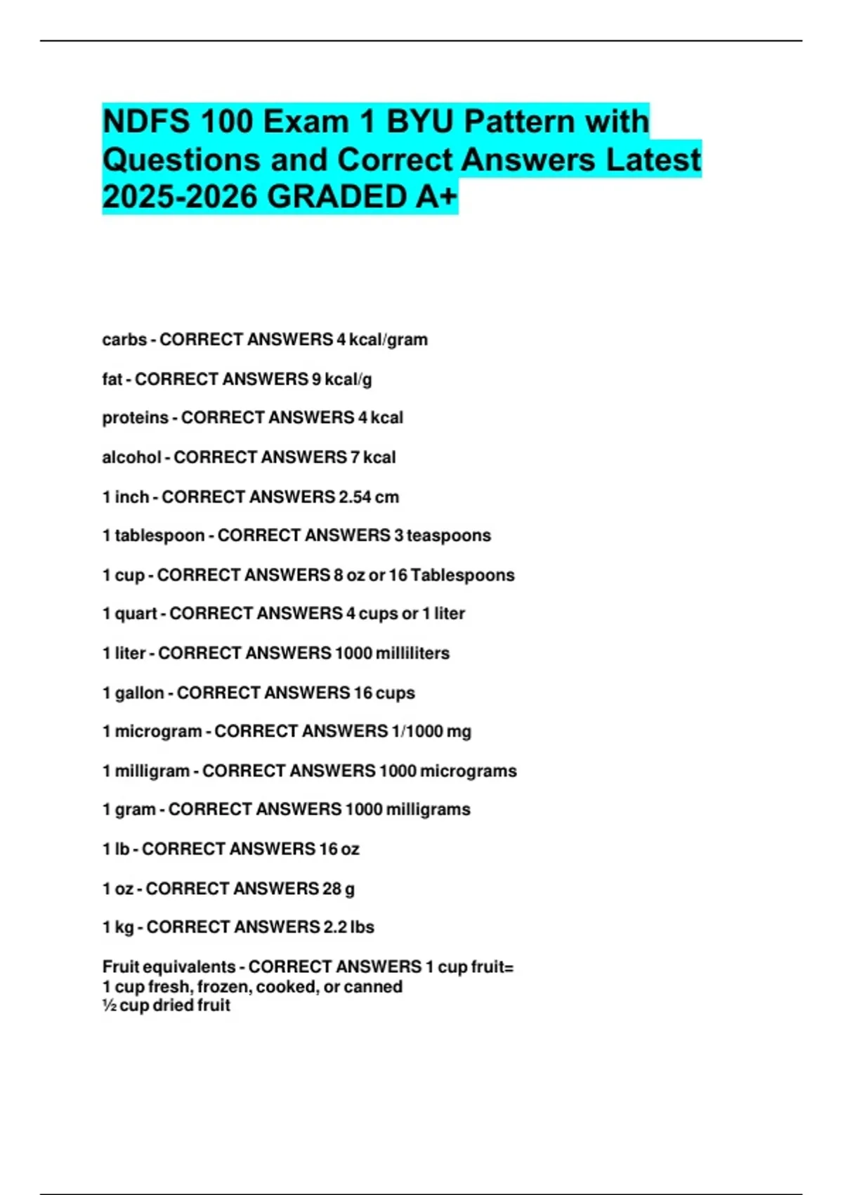 NDFS 100 Exam 1 BYU Pattern with Questions and Correct Answers Latest GRADED A+. NDFS 100 Exam 1 BYU Pattern with Questions and Correct Answers Latest GRADED A+.NDFS 100 Exam 1 BYU Pattern with Questions and Correct Answers Latest GRADED A+.NDFS 100 Exam 1 BYU Pattern with Questions and Correct Answers Latest GRADED A+.