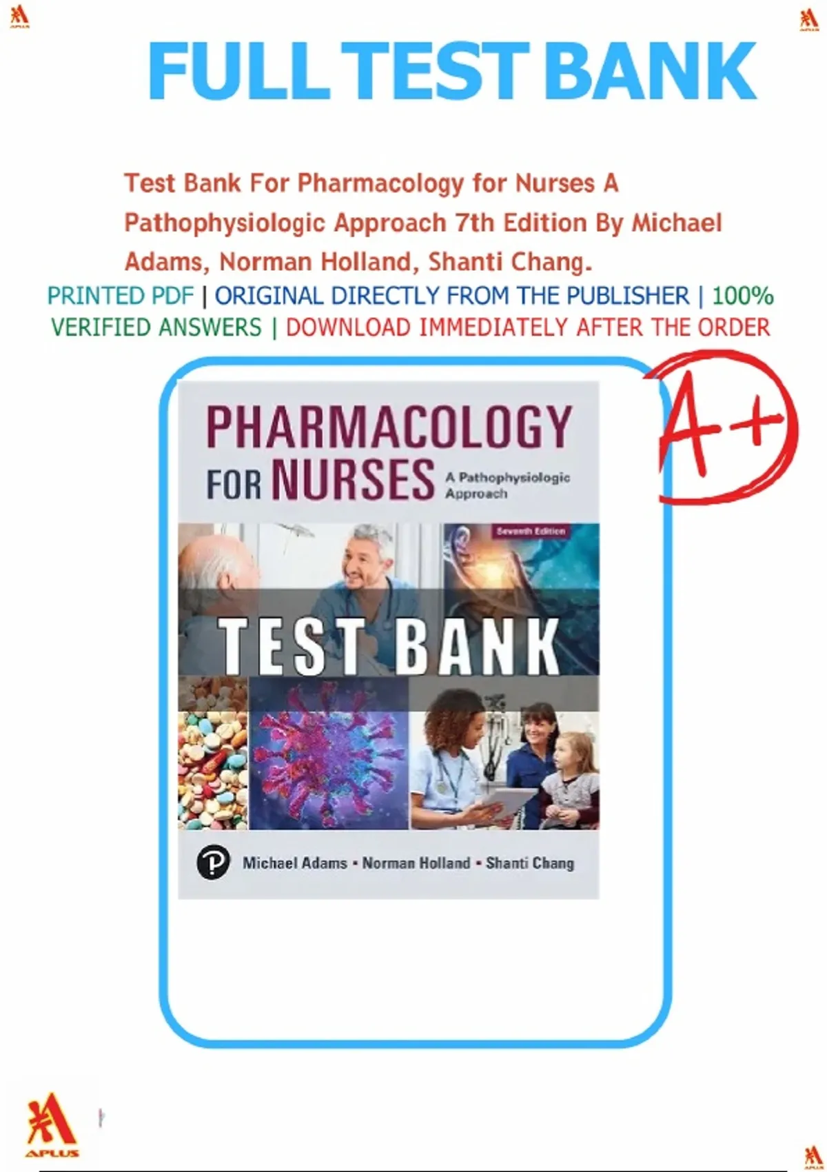 Test Bank for Pharmacology for Nurses: A Pathophysiologic Approach 7th Edition by Michael P. Adams, Norman Holland & Shanti Chang.|All chapters 1-50 included|Latest update, Graded A+.
