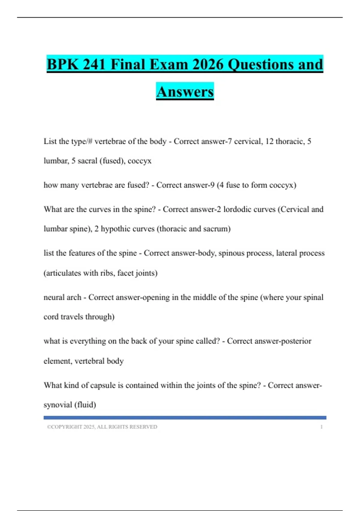 BPK 241 Final Exam 2026 Questions and