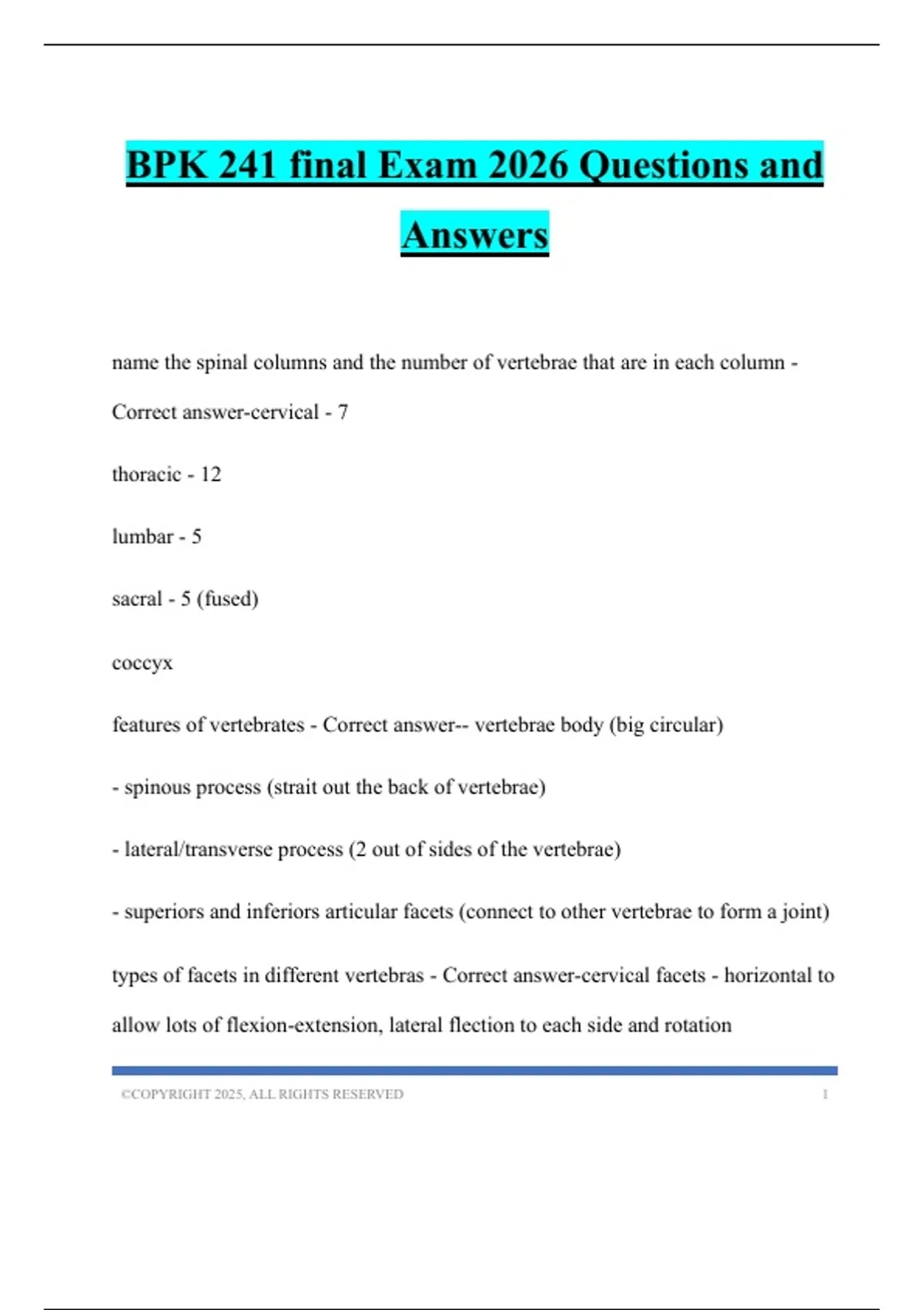 BPK 241 Bundled Tests 2026 Questions and Answers
