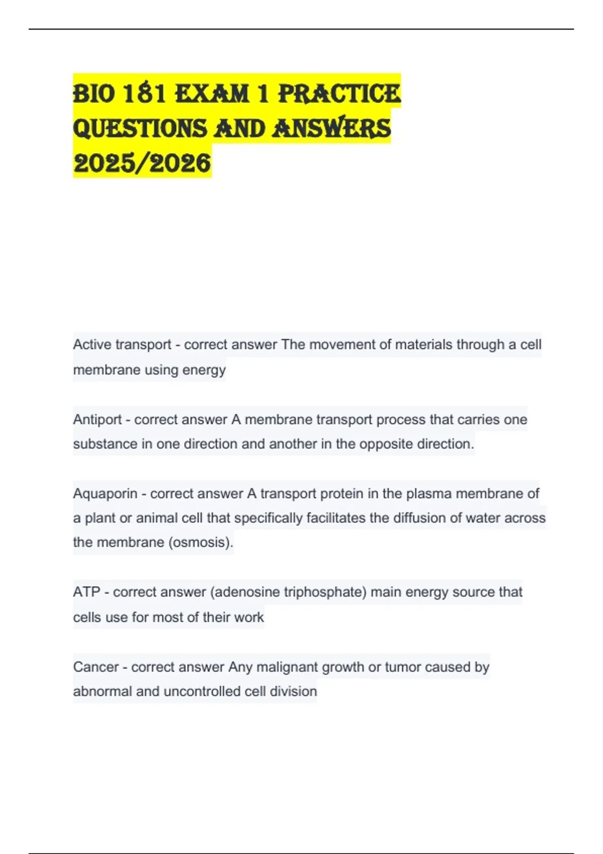Bio 181 Exam 1 PRACTICE