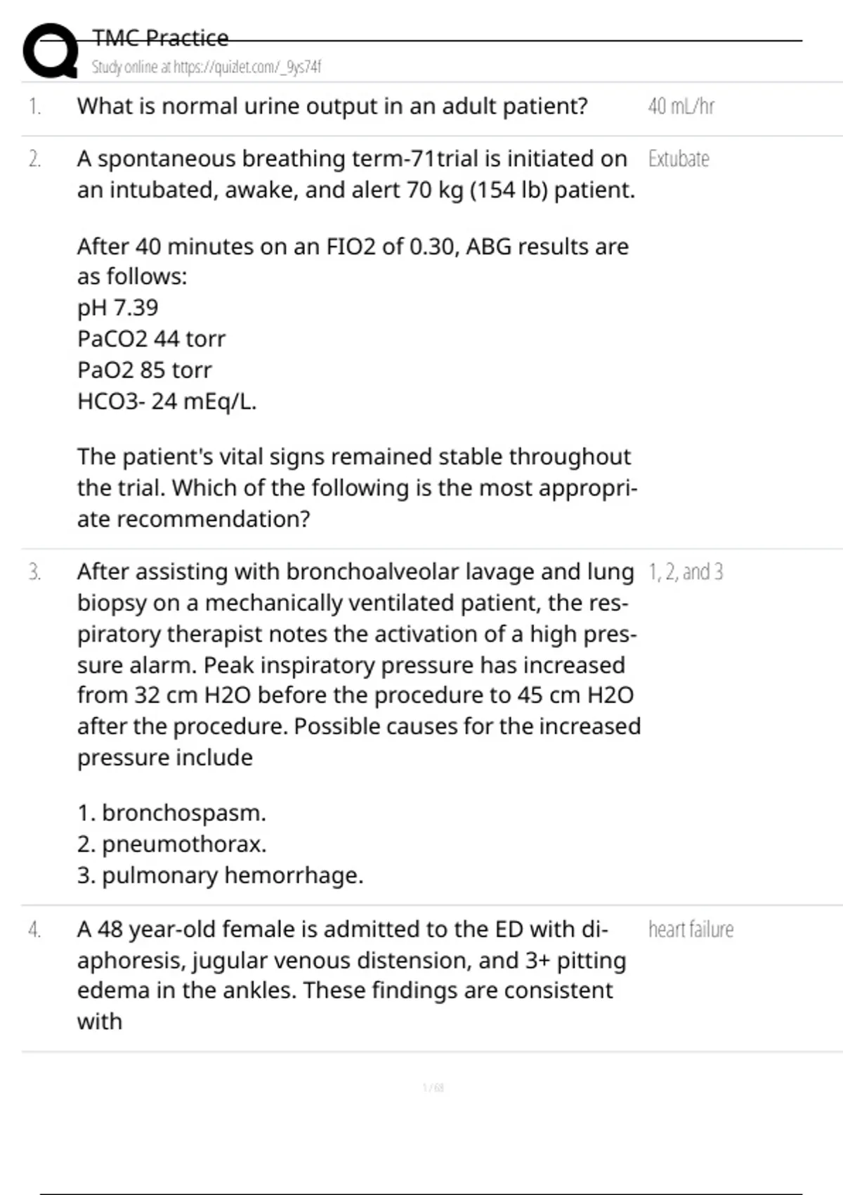 1. What is normal urine output in an adult patient? 40 mL/hr