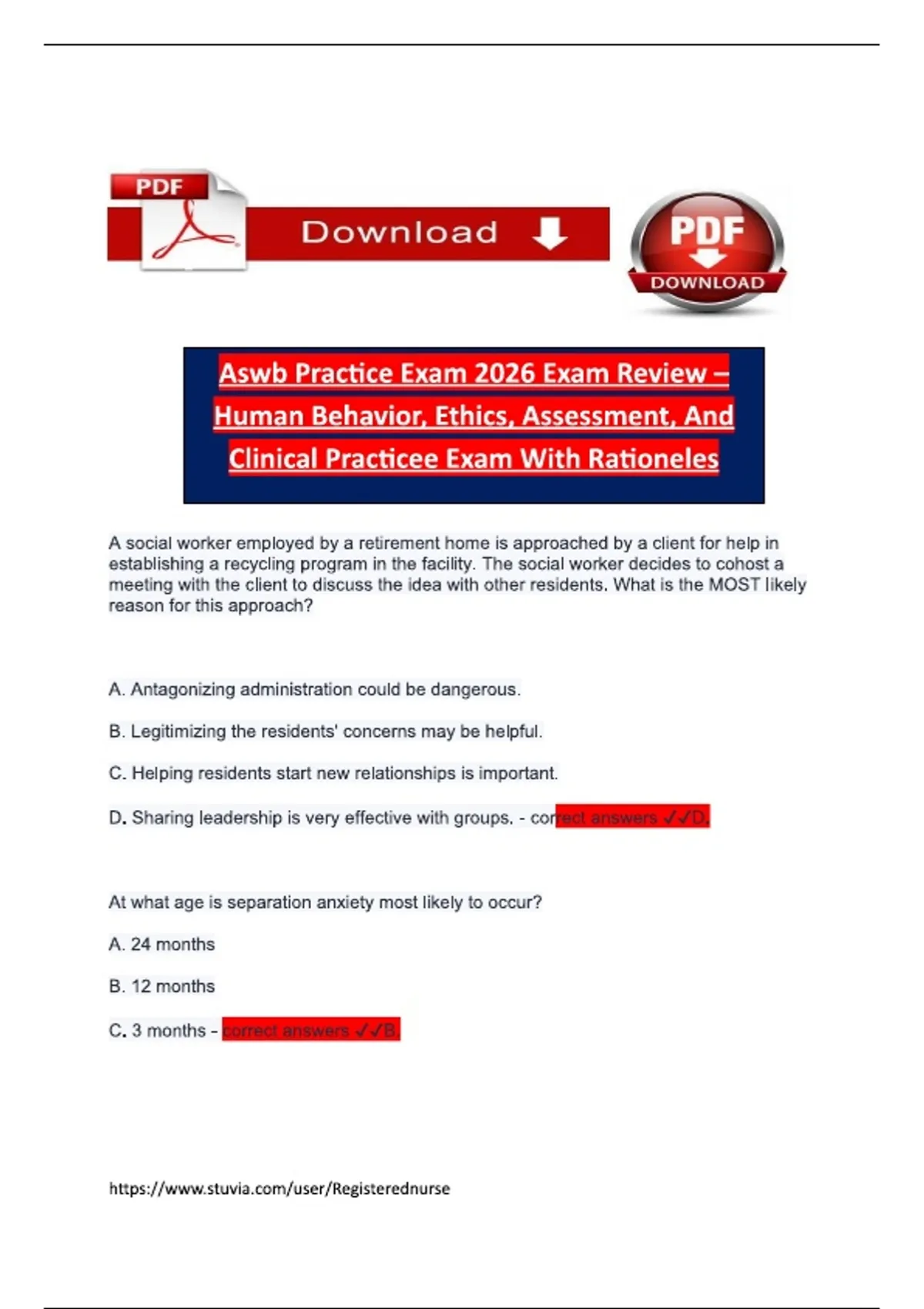 Aswb Practice Exam 2026 Exam Review – H...cal Practicee Exam With Rationeles