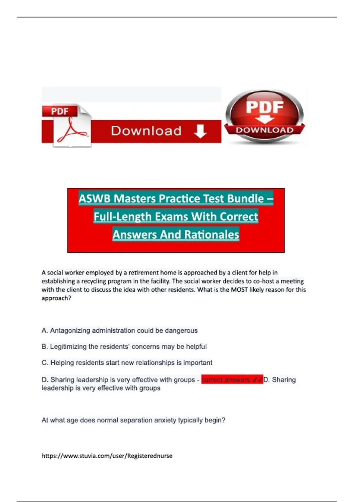 ASWB Masters Practice Test Bundle – Ful...ith Correct Answers And Rationales
