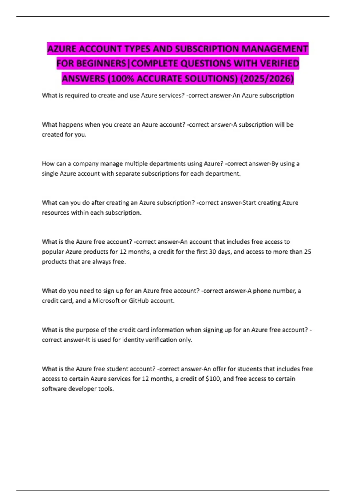 What is required to create and use Azure services? -correct answer-An Azure subscription