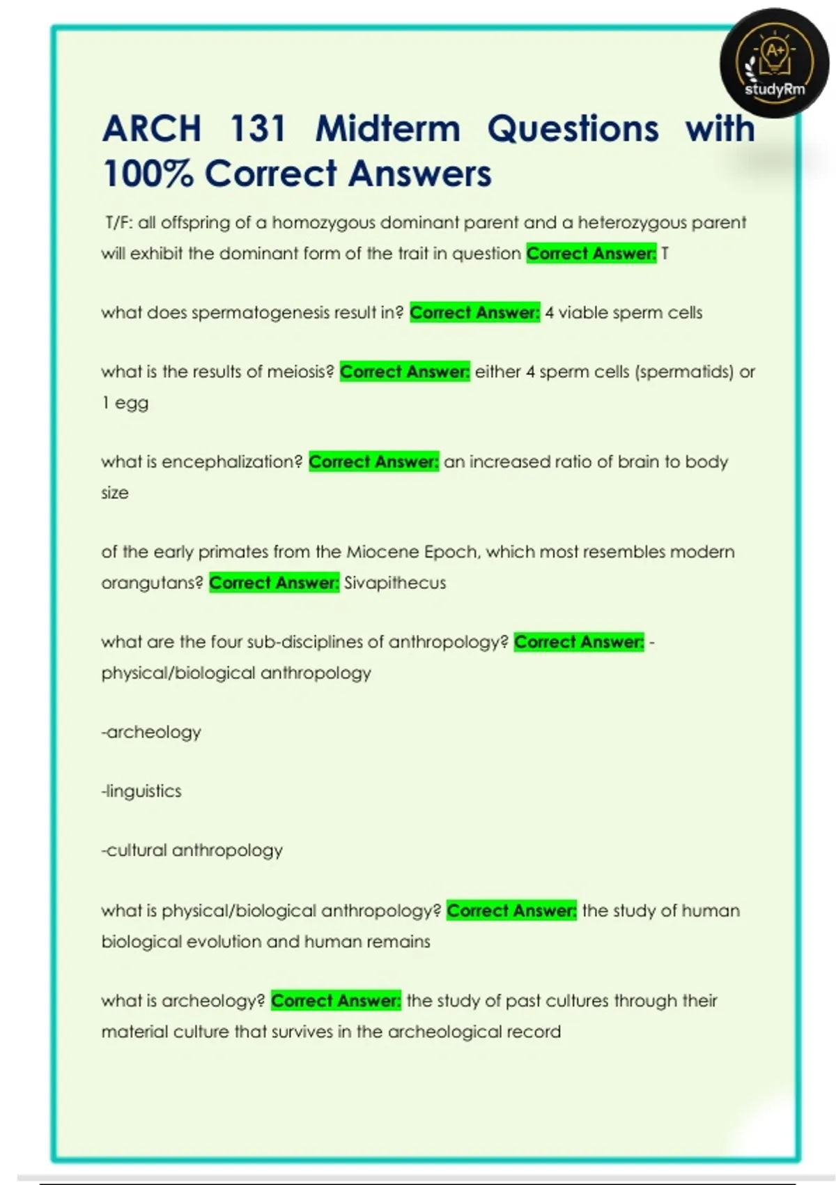ARCH 131 Midterm Questions with 100% Correct Answers