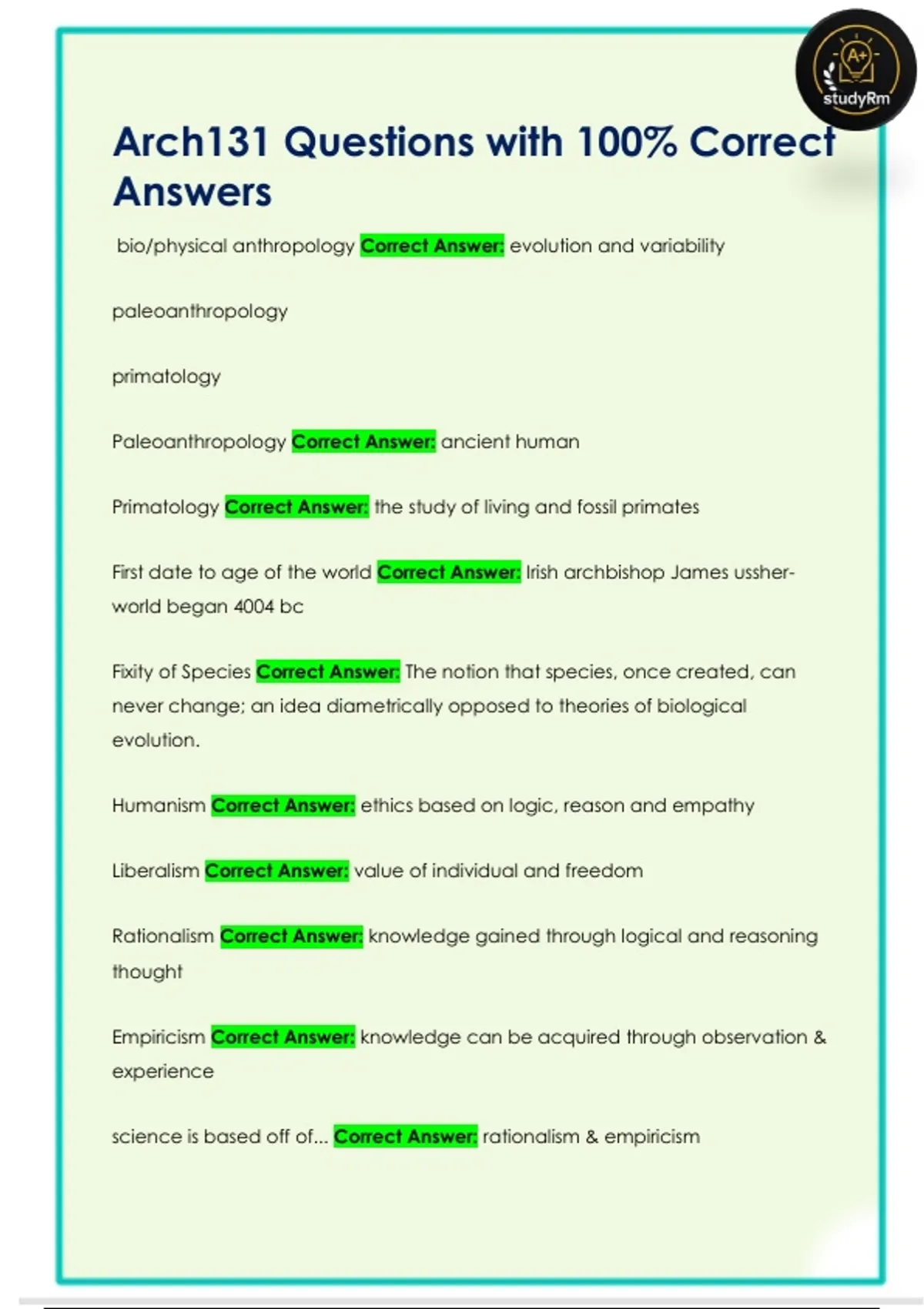 Arch131 Questions with 100% Correct