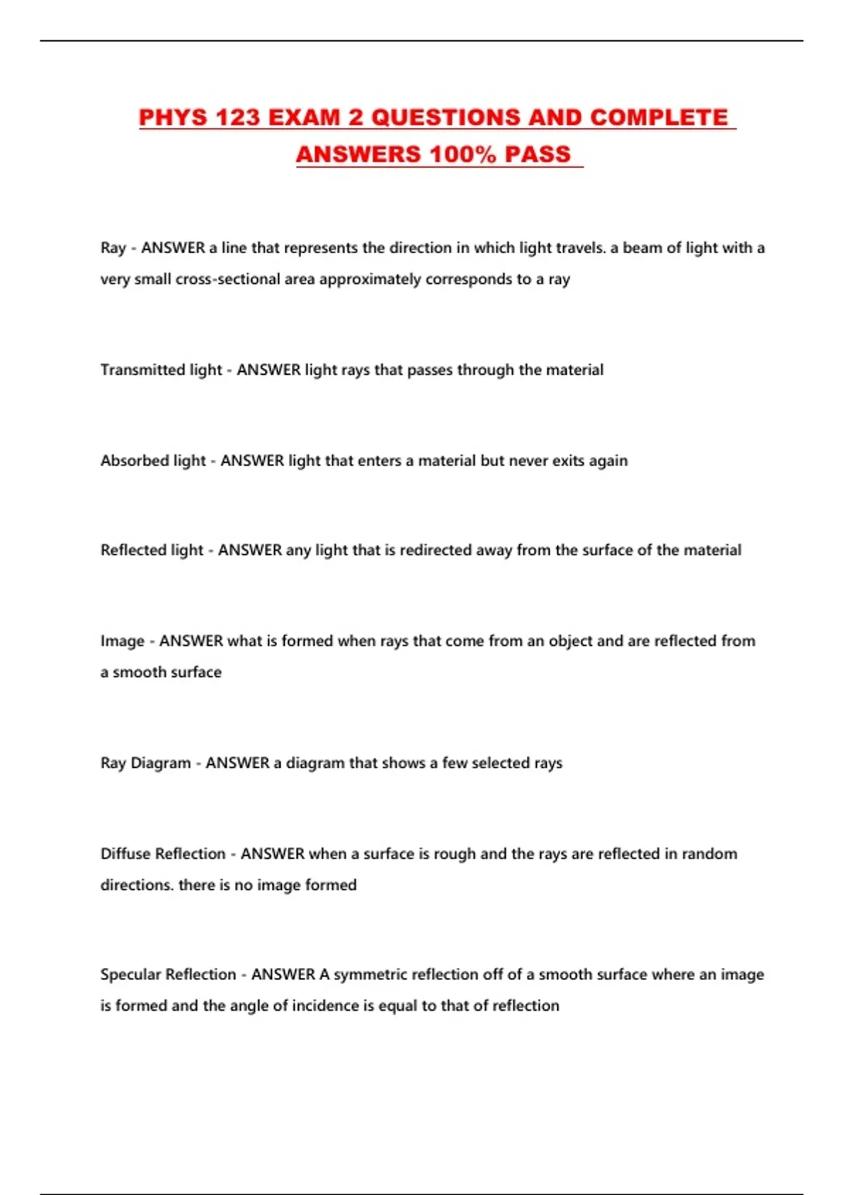 PHYS 123 EXAM 2 QUESTIONS AND COMPLETE ANSWERS 100% PASS ...