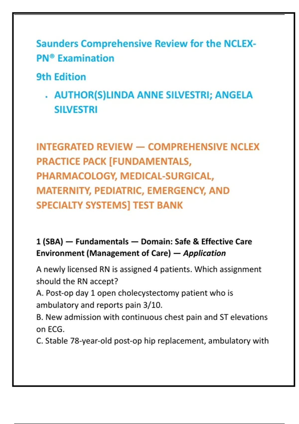 1 (SBA) — Fundamentals — Domain: Safe & Effective Care