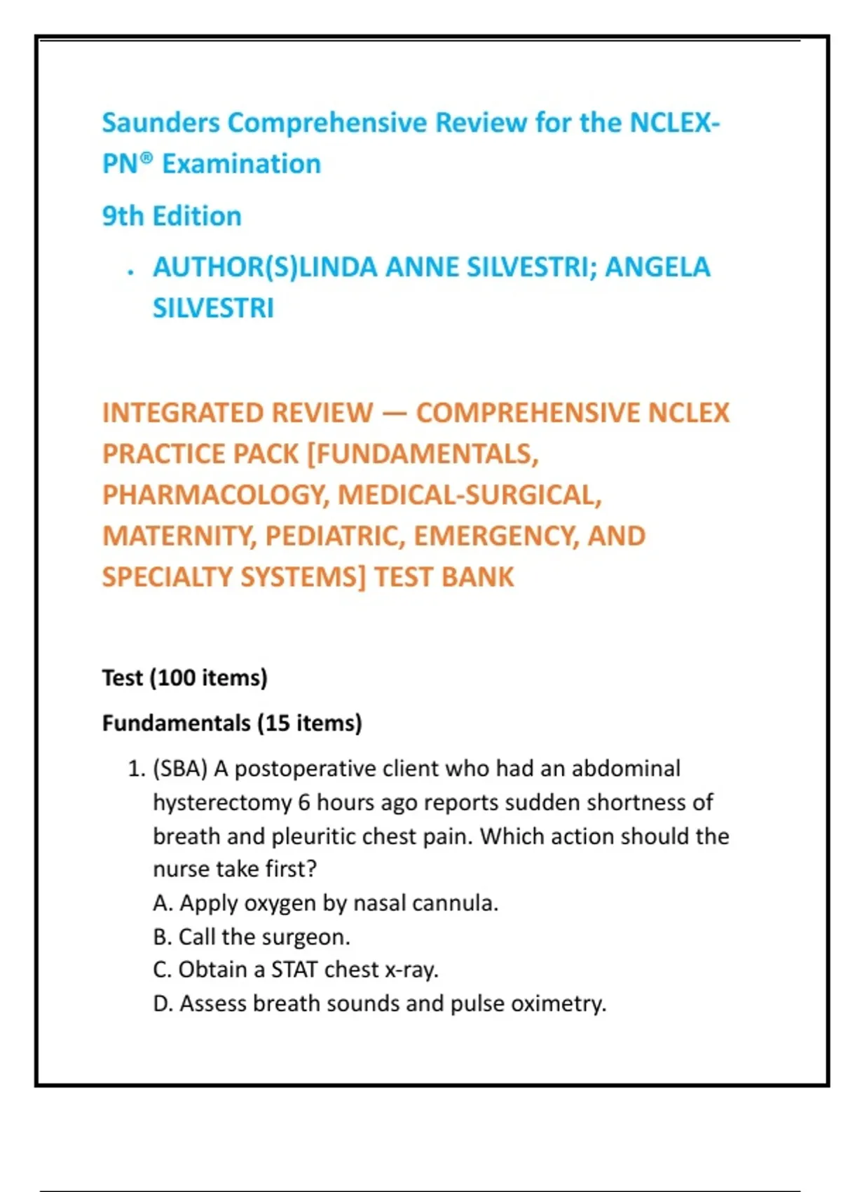 1. (SBA) A postoperative client who had an abdominal