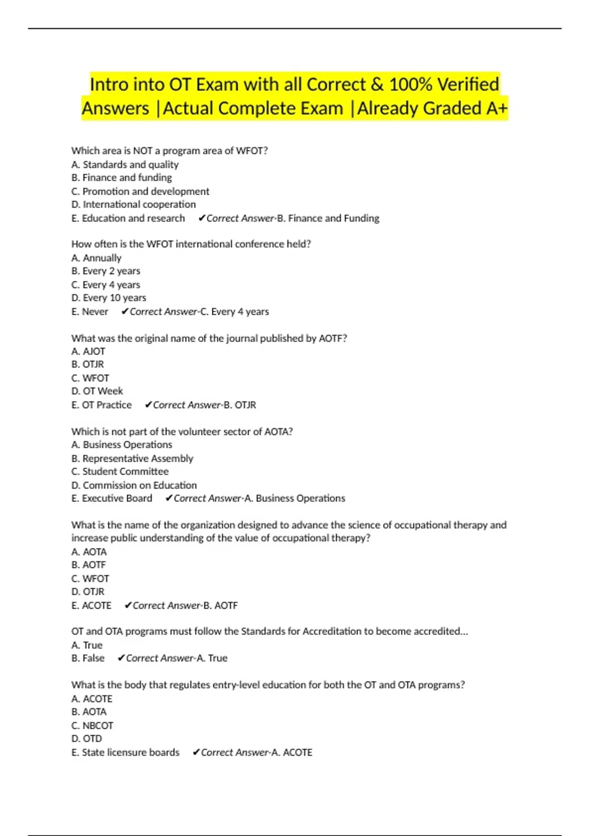 Intro into OT Exam with all Correct & 100% Verified Answers |Actual Complete Exam |Already Graded A+