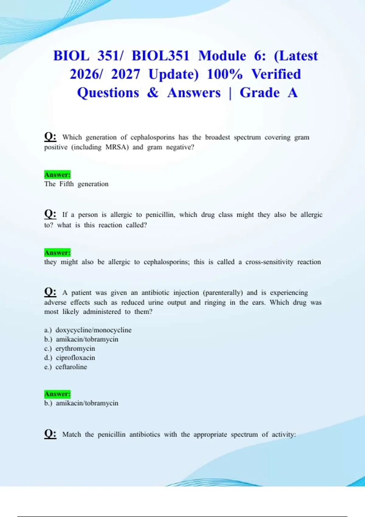 BIOL 351/ BIOL351 Module 6: (Latest 2026/ 2027 Update) 100% Verified Questions & Answers | Grade A