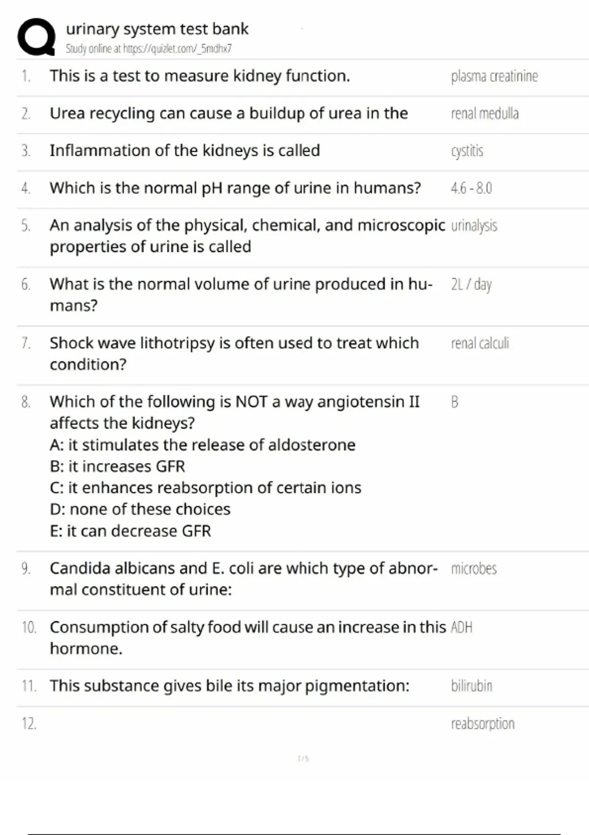 Prepare for your exams with this 2025 updated Urinary System Test Bank. Includes NCLEX-style multiple choice questions, detailed answers, and rationales covering kidney anatomy, urine formation, and urinary physiology — perfect for Anatomy & Physiology and nursing students aiming to score 100%.