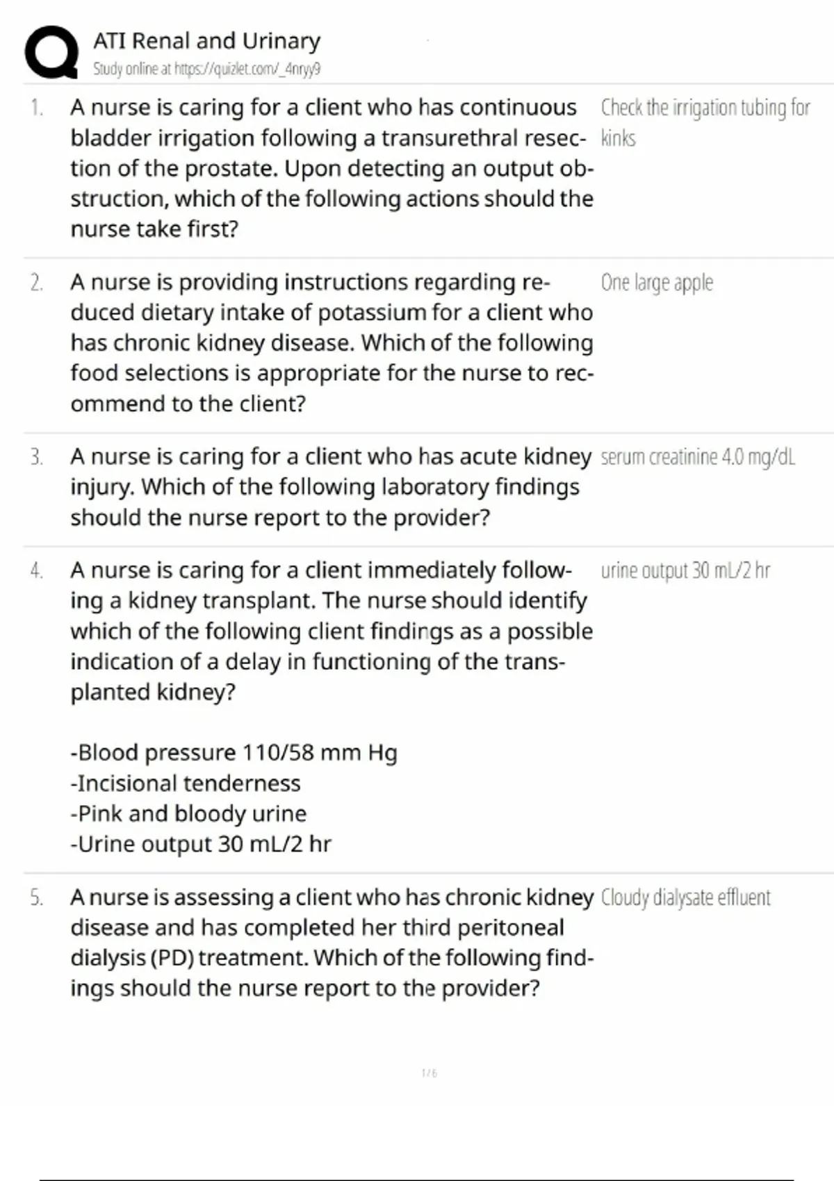 ati renal and urinary quiz answers