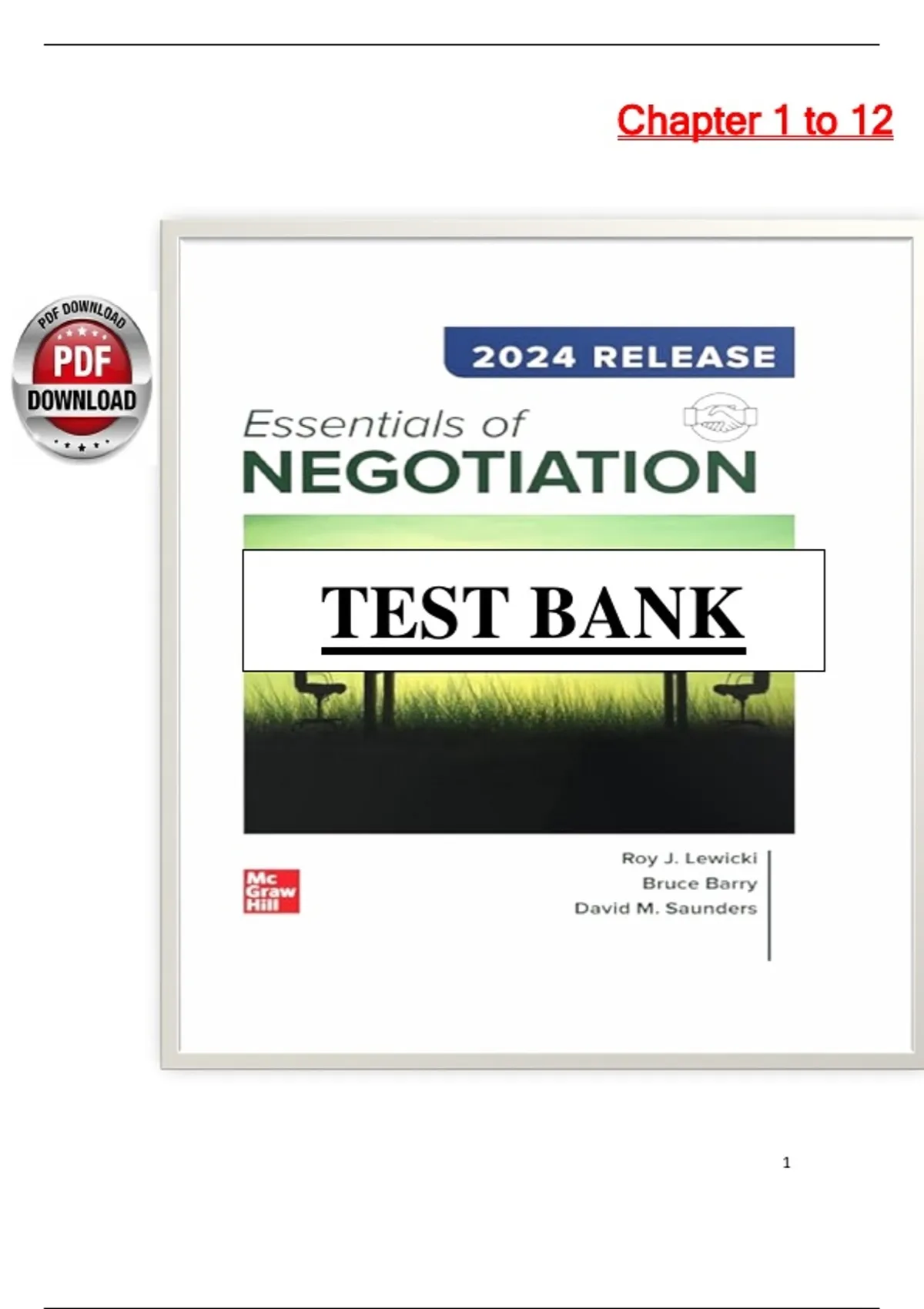 Instant Download Pdf, comprehensive Test Bank for Essentials of Negotiation (4th Canadian Edition) covering Chapters 1–12; classroom-style MCQs, true/false, and application items with verified answer keys on distributive & integrative bargaining, negotiation planning, perception & cognition, communication, power & ethics, relationships, teams, multiparty and cross-cultural negotiation—ideal for quizzes, midterms, and finals; fully searchable and printable PDF with immediate access. essentials of negotiation 4th canadian, lewicki barry saunders, negotiation test bank, mcgraw hill negotiation, canadian edition negotiation, distributive bargaining, integrative bargaining, negotiation planning, negotiation communication, perception and cognition, power and ethics, multiparty negotiation, team negotiation, cross-cultural negotiation, conflict management, BATNA and reservation price, negotiation strategies, case questions with answers, study guide pdf, instant download pdf Test Bank, Negotiation 4e (Canada), Chapter 1–12, Distributive vs Integrative, Planning & Strategy, Power & Ethics, Cross-Cultural, Homework Help, Exam Prep, PDF Download