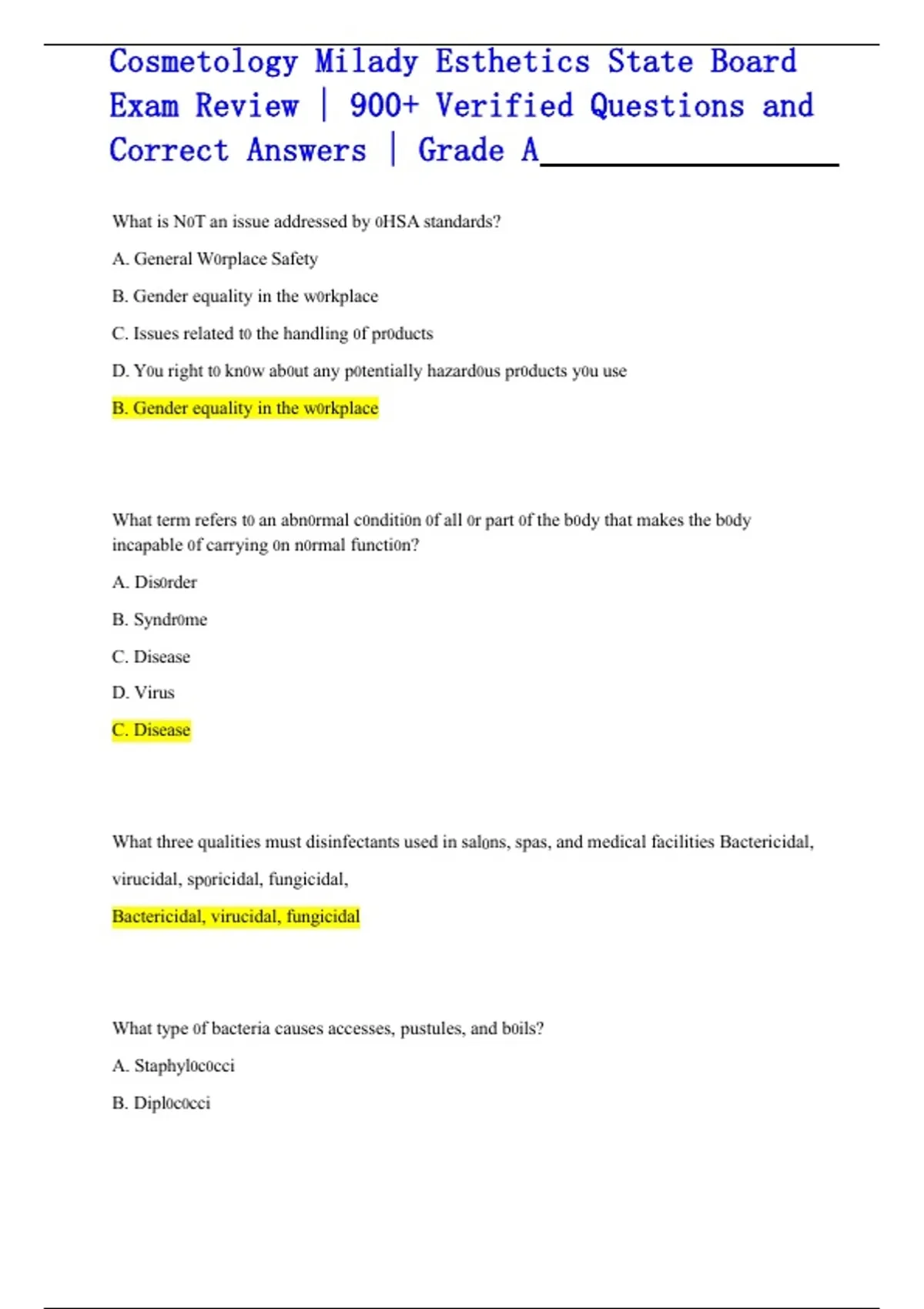, Milady Esthetics State B0ard Exam Review (New 2025/ 2026