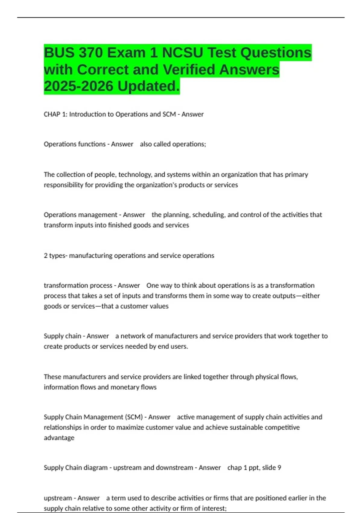 CHAP 1: Introduction to Operations and SCM - Answer