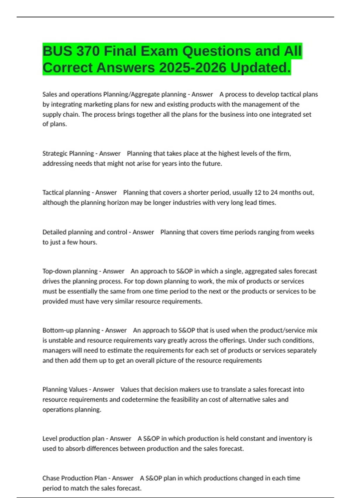 BUS 370 Final Exam Questions and All Correct Answers Updated.