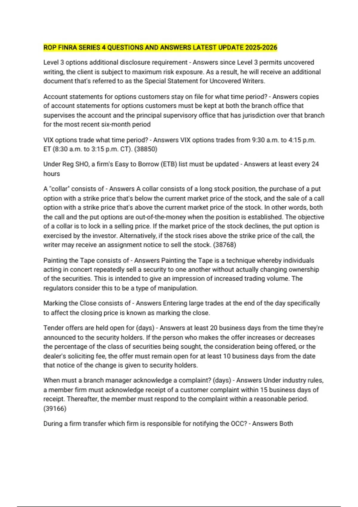 ROP FINRA SERIES 4 QUESTIONS AND ANSWERS LATEST UPDATE 2025-2026