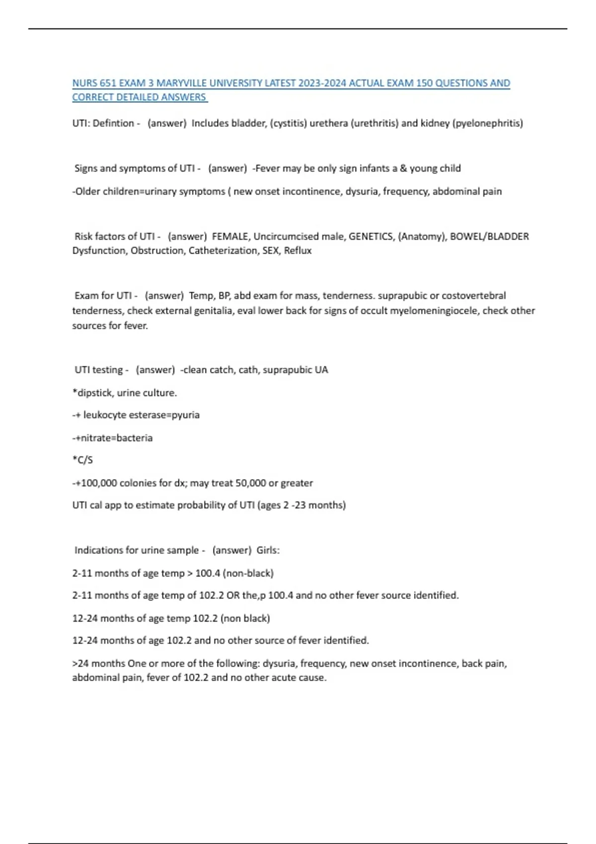 , NURS 651 EXAM 3 MARYVILLE UNIVERSITY LATEST 2023-2024 ACTUAL EXAM 150 QUESTIONS AND