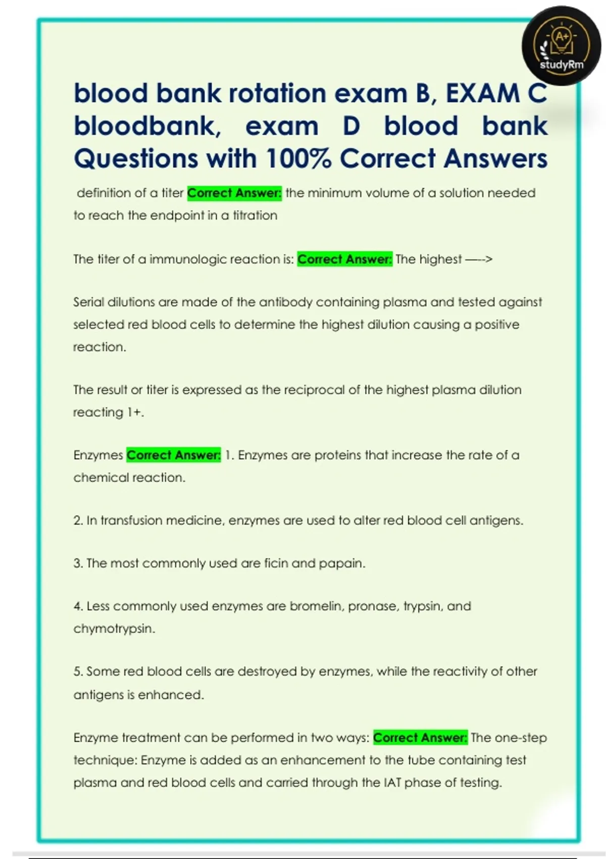 blood bank rotation exam B, EXAM C