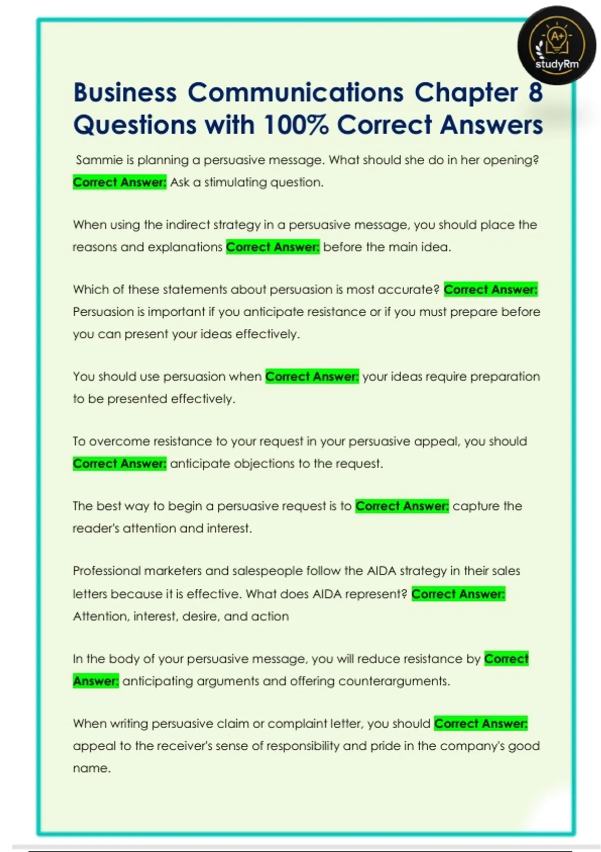 Business Communications Chapter 8 Questions with 100% Correct Answers