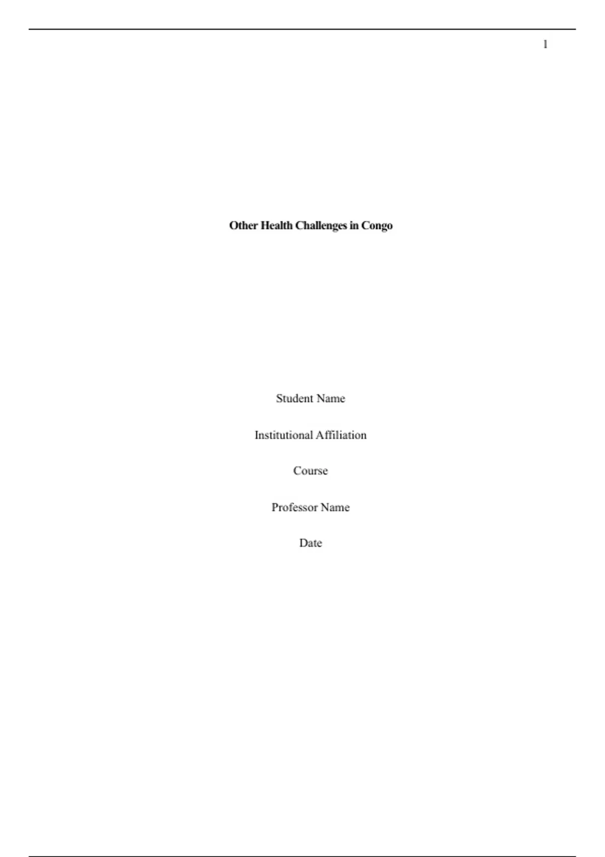 This document is a report detailing specific health challenges and communicable diseases prevalent in the Democratic Republic of the Congo (DRC), beyond the commonly known public health issues. The paper focuses on the necessity for visitors or those traveling to the DRC to be aware of the country's prevalent communicable diseases to ensure personal safety. It highlights the DRC's vulnerable and unprotected population and high mortality rates linked to these diseases. Key Health Challenges Analyzed: Tuberculosis (TB): Discussed as a leading cause of high mortality rates, often linked to comorbidities like HIV. The document cites high incidence rates (370 per 100,000 in 2021) and the typical clinical presentation (prolonged cough, weight loss) common in immunocompromised populations. Ebola: Mentioned as a frequently reported, life-threatening disease in the region. Rift Valley Fever (RVF): Analyzed as a significant disease, particularly its transmission (mosquito vectors), symptoms (fever, headache, liver abnormalities), and fatal outcomes in certain cases. The document notes the DRC's efforts in livestock immunization to reduce outbreaks. Key Comparison: The paper establishes a critical connection between Rift Valley Fever (RVF) and Malaria, noting they have similar presentations and transmission methods. This similarity often leads to misdiagnosis, resulting in poor treatment and management, underscoring the need for accurate diagnostic tools in these high-prevalence regions.