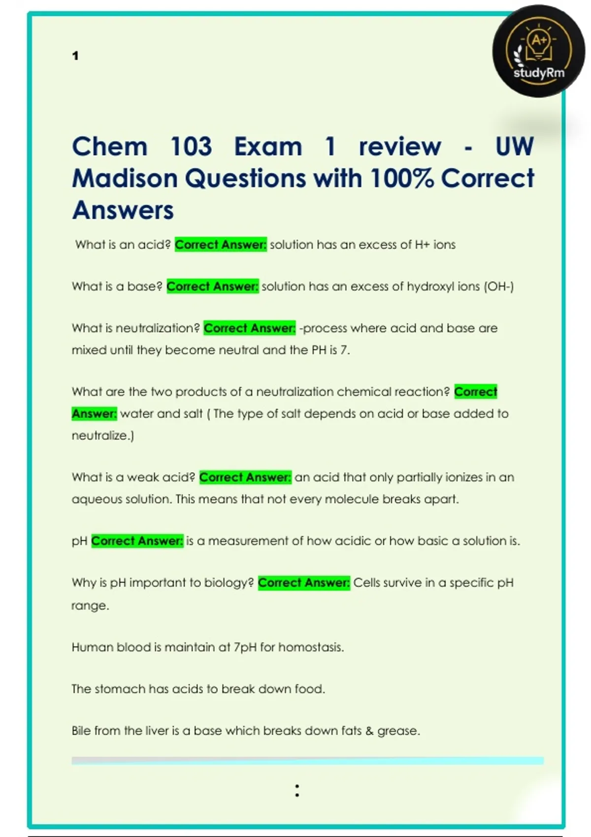 Why is pH important to biology? Correct Answer: Cells survive in a specific pH