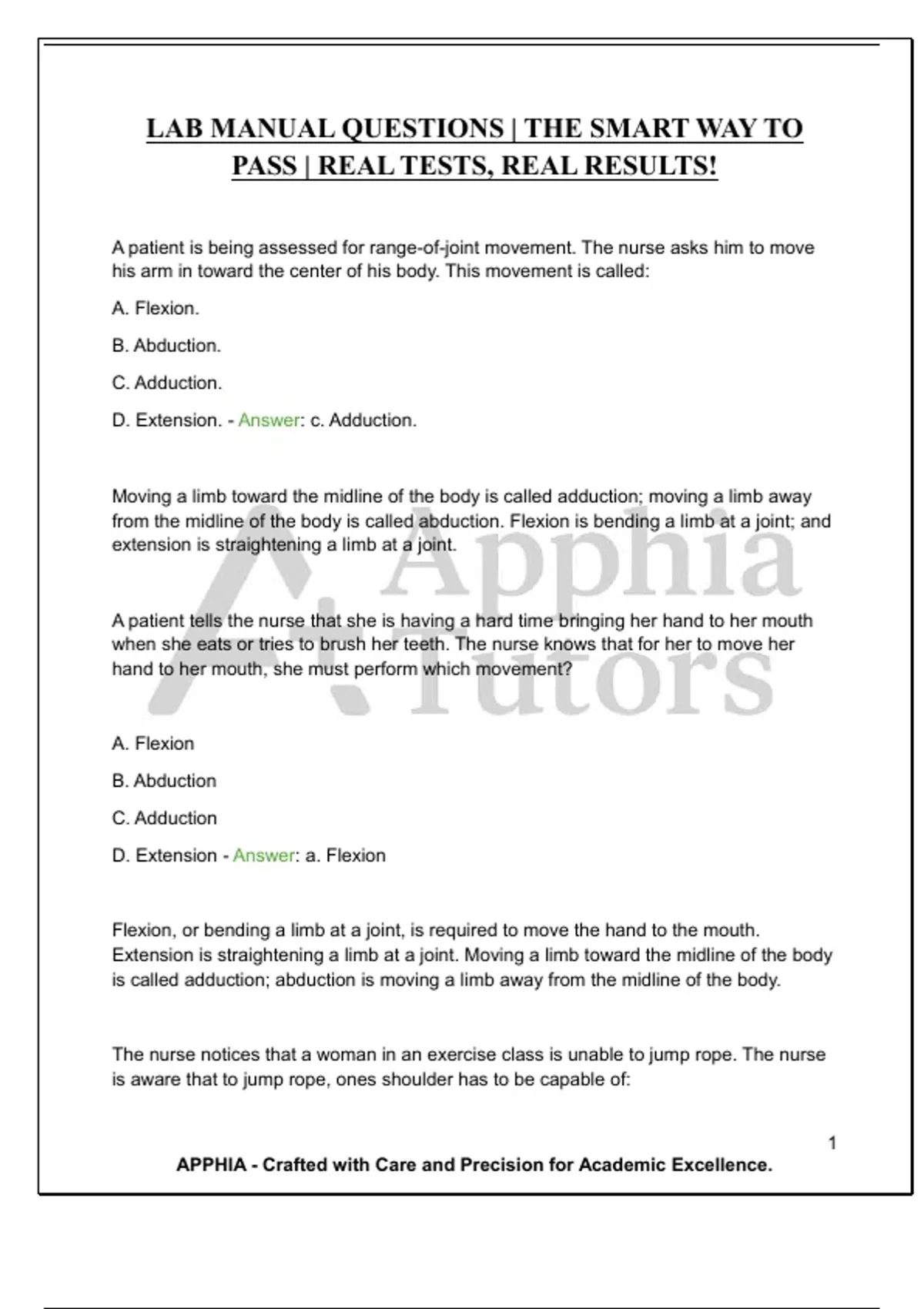 D. Extension - Answer: a. Flexion