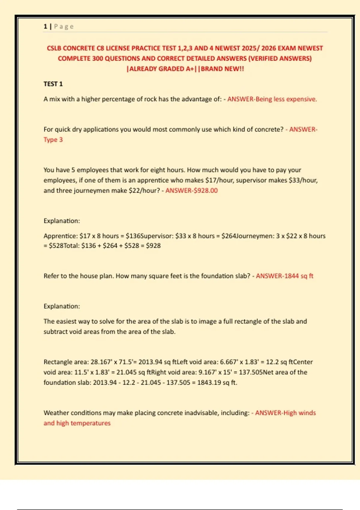 CSLB CONCRETE C8 LICENSE PRACTICE TEST 1,2,3 AND 4 NEWEST 2025/ 2026 EXAM NEWEST