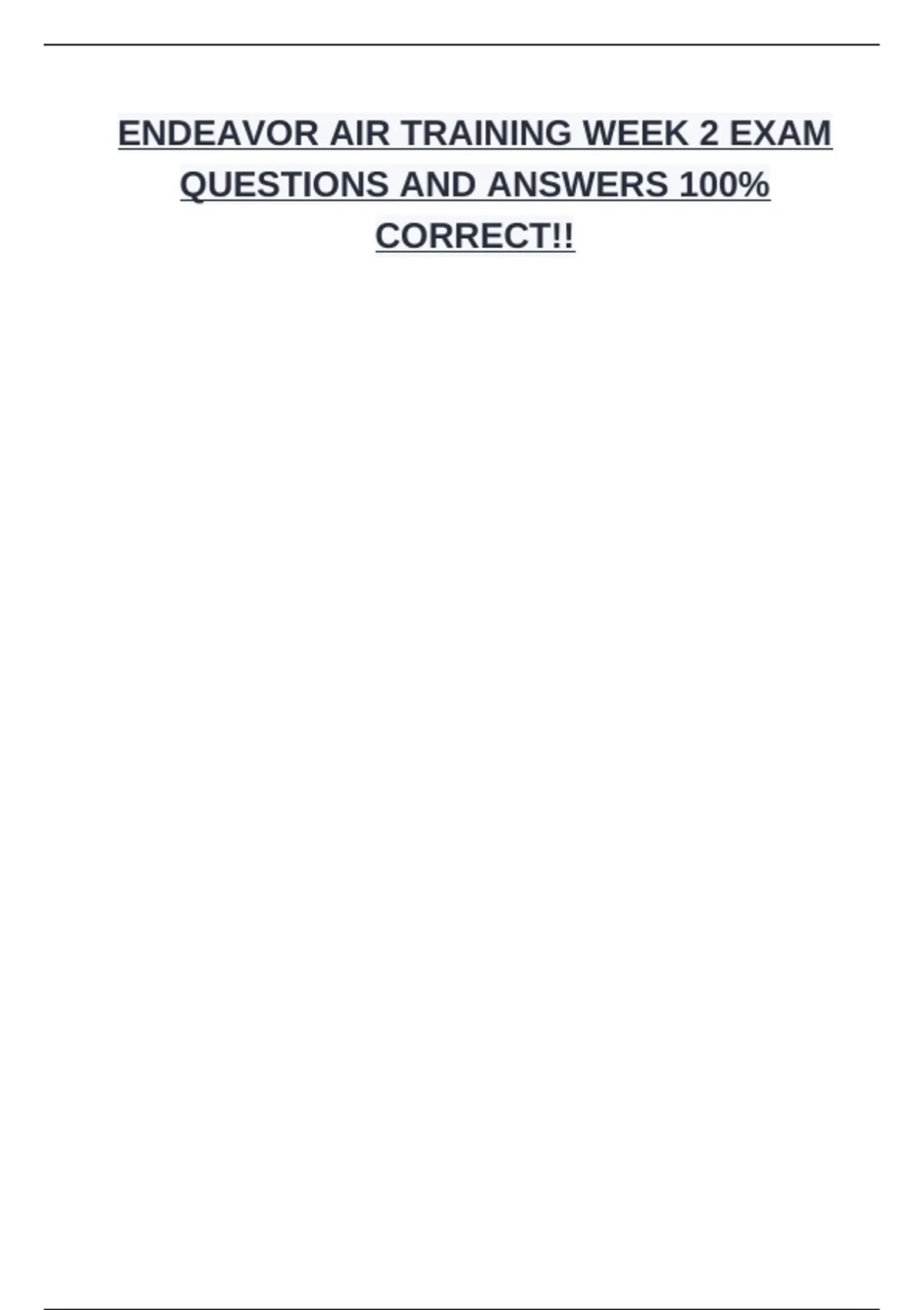 ENDEAVOR AIR TRAINING WEEK 2 EXAM QUESTIONS AND ANSWERS 100% CORRECT!!
