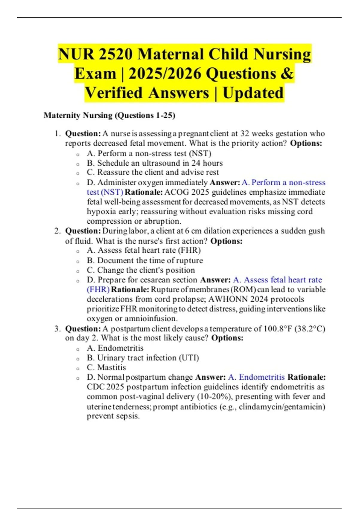Maternity Nursing (Questions 1-25)
