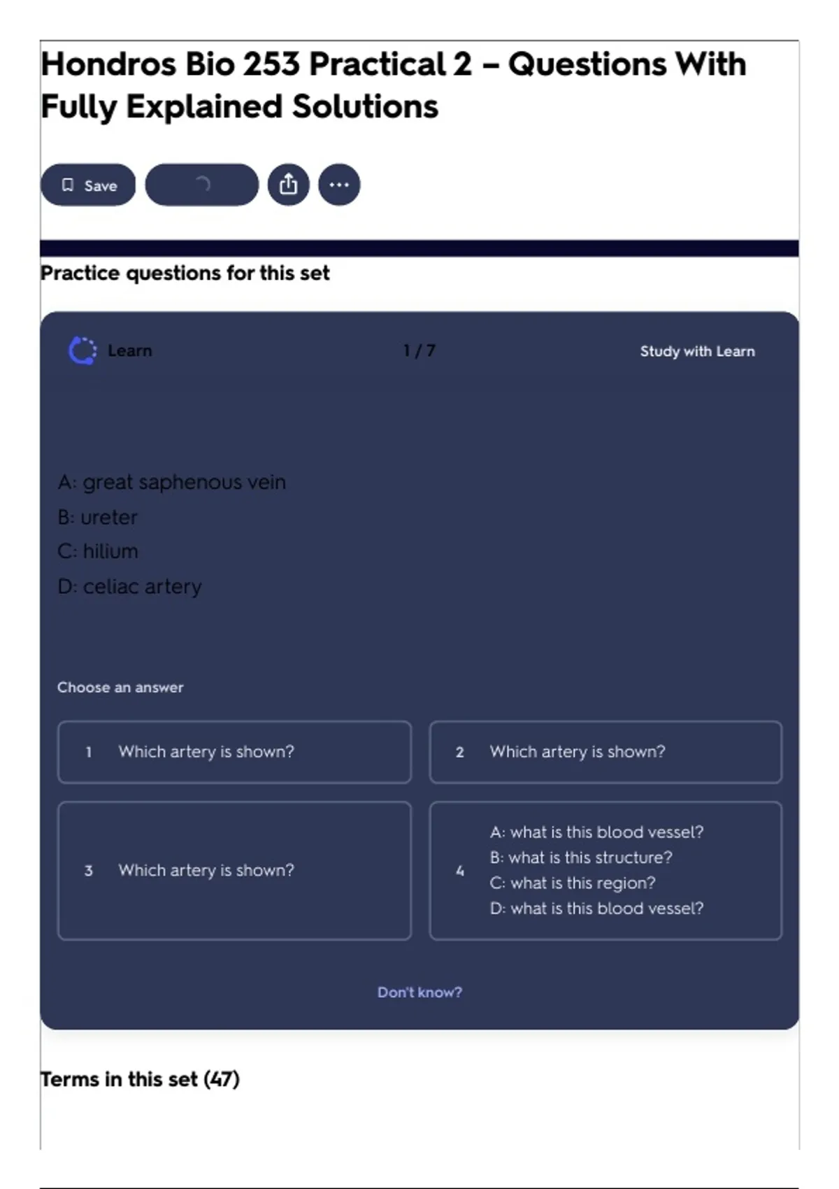1 Which artery is shown? 2 Which artery is shown?