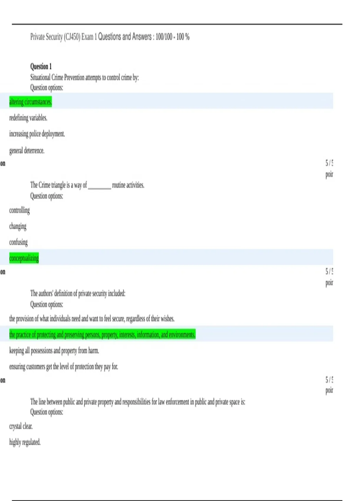 Private Security (CJ450) Exam 1 Questions and Answers.