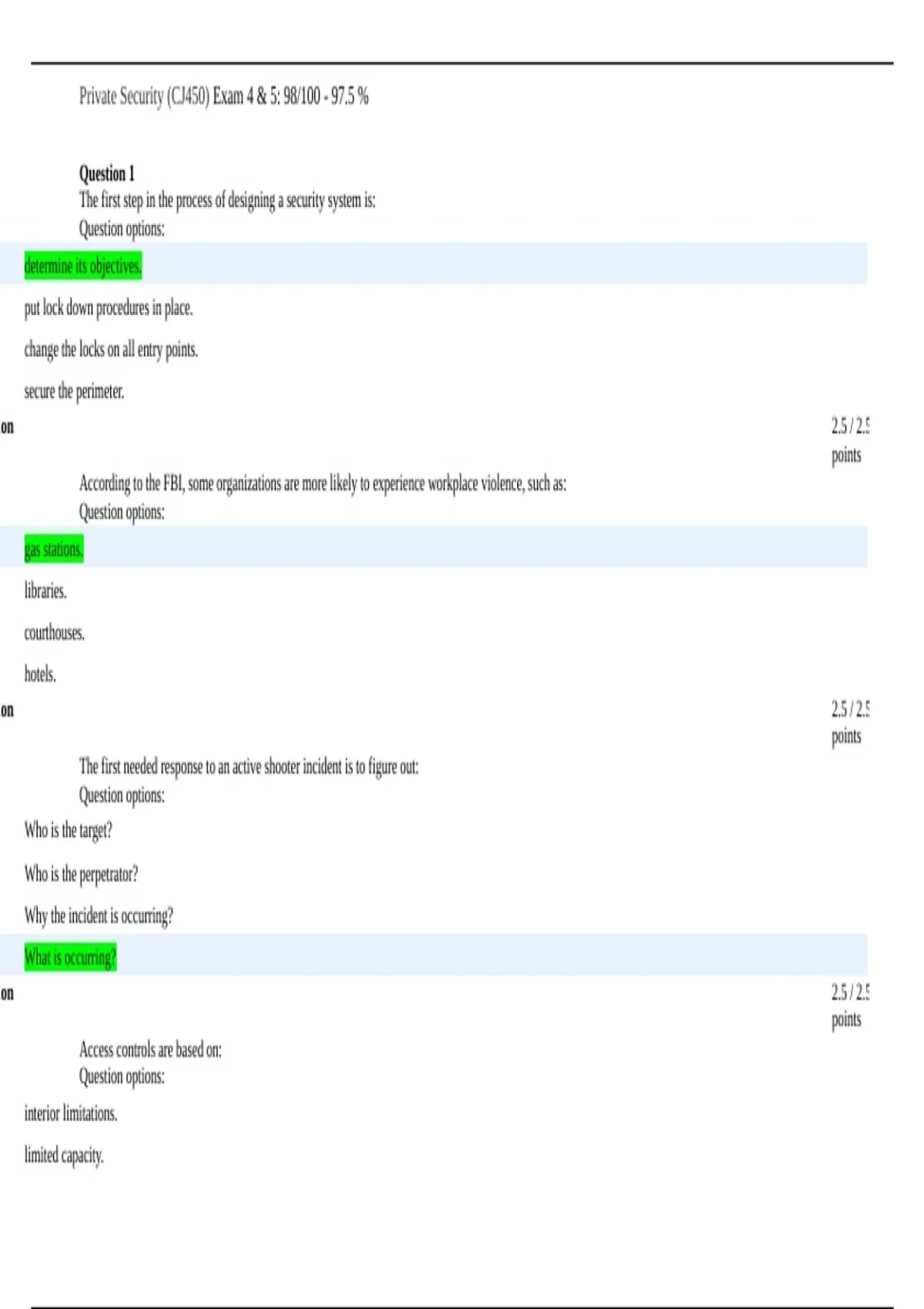 , Private Security (CJ450) Exam 4 & 5: 98/100 - 97.5 %