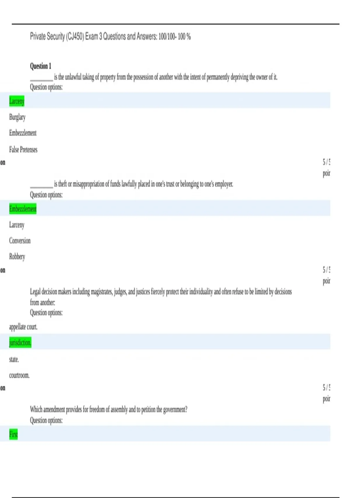 Private Security (CJ450) Exam 3 Questions and Answers: 100/100- 100 %