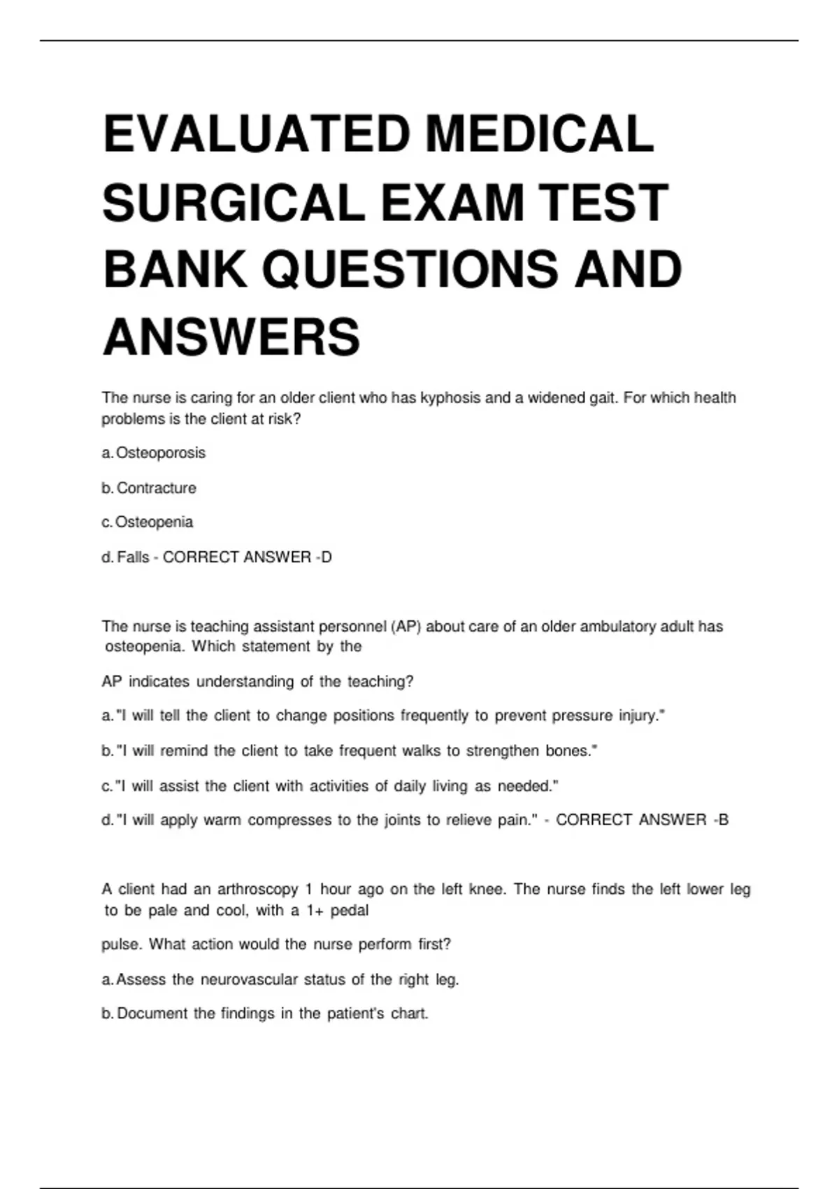 d. Falls - CORRECT ANSWER -D