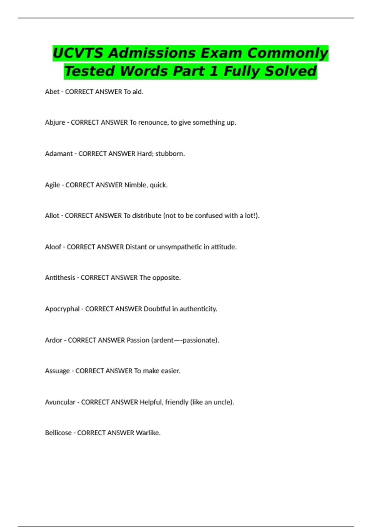 UCVTS Admissions Exam Commonly Tested Words Part 1 Fully Solved