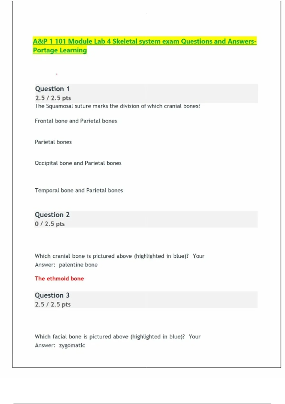 A&P 1 101 Module Lab 4 Skeletal system exam Questions and Answers- Portage Learning A&P 1 101 Module Lab 4 Skeletal system exam Questions and Answers- Portage Learning