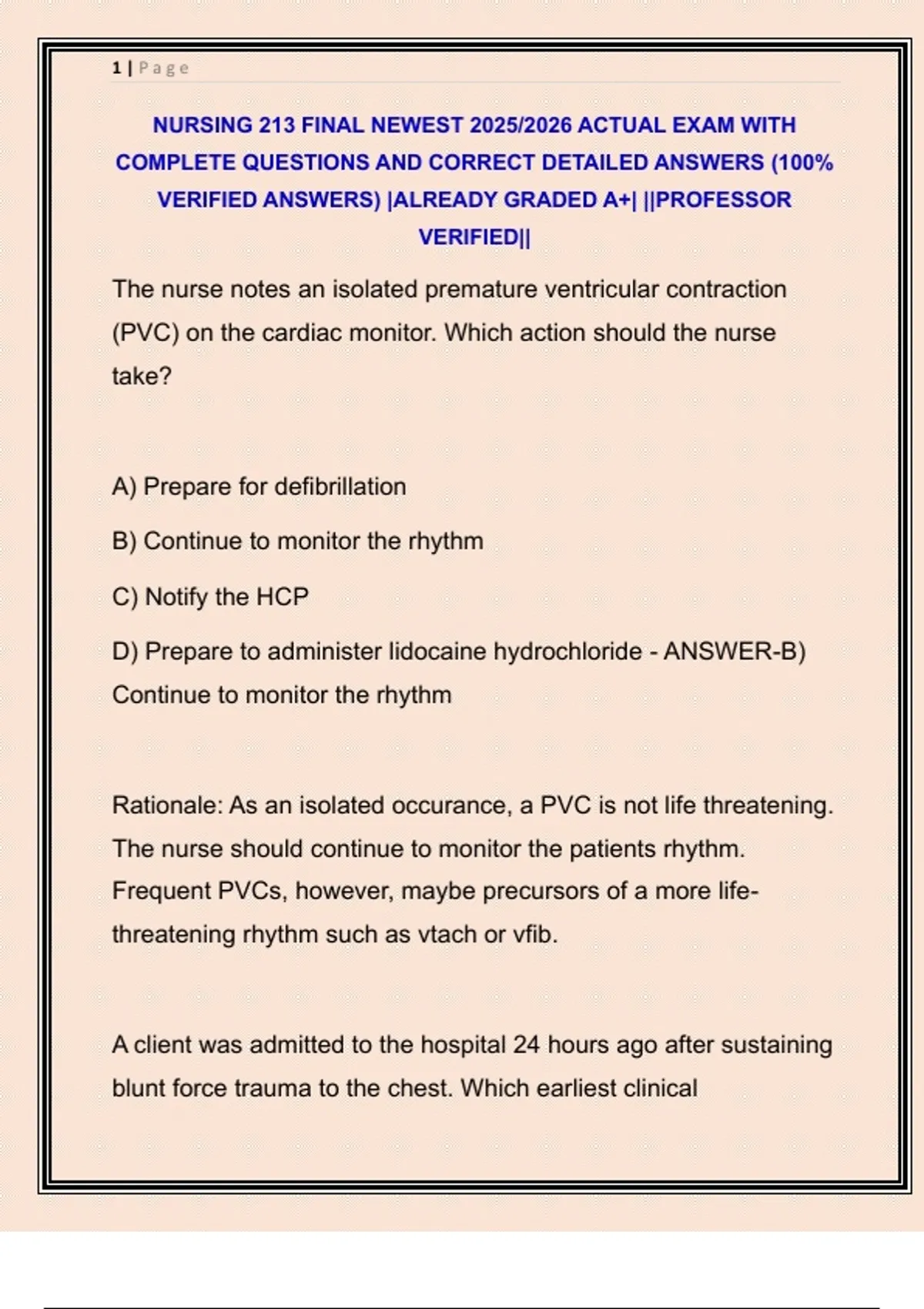 NURSING 213 FINAL NEWEST 2025/2026 ACTUAL EXAM WITH